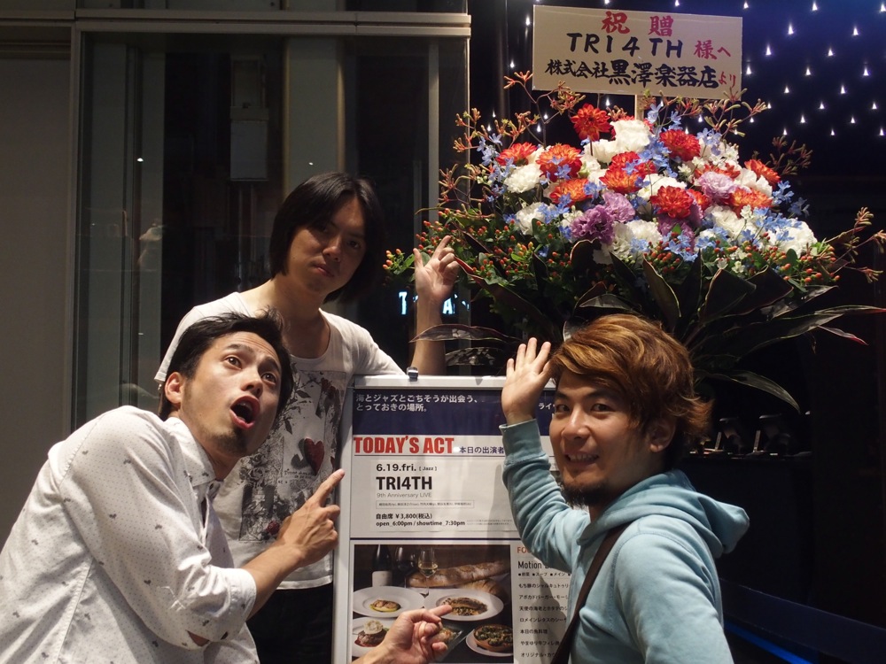 今回のセットリストとして、所謂 TRI4TH の結成当初からやっている曲から 3rd.CDアルバムまでの曲、そして今後新しくリリースするに向けて制作中の新曲の数々等、本当に自分達の変遷を辿れる、選りすぐりの曲達をお送りしていきました。オリジナル曲は勿論の事、最近よく取り上げるジャズ・スタンダード曲の“Moani'n”や“Night In Tunisia”、珍しいところでは以前お手伝いさせて頂いた“犬神家の一族〜愛のバラード”等もお送りしていきました。