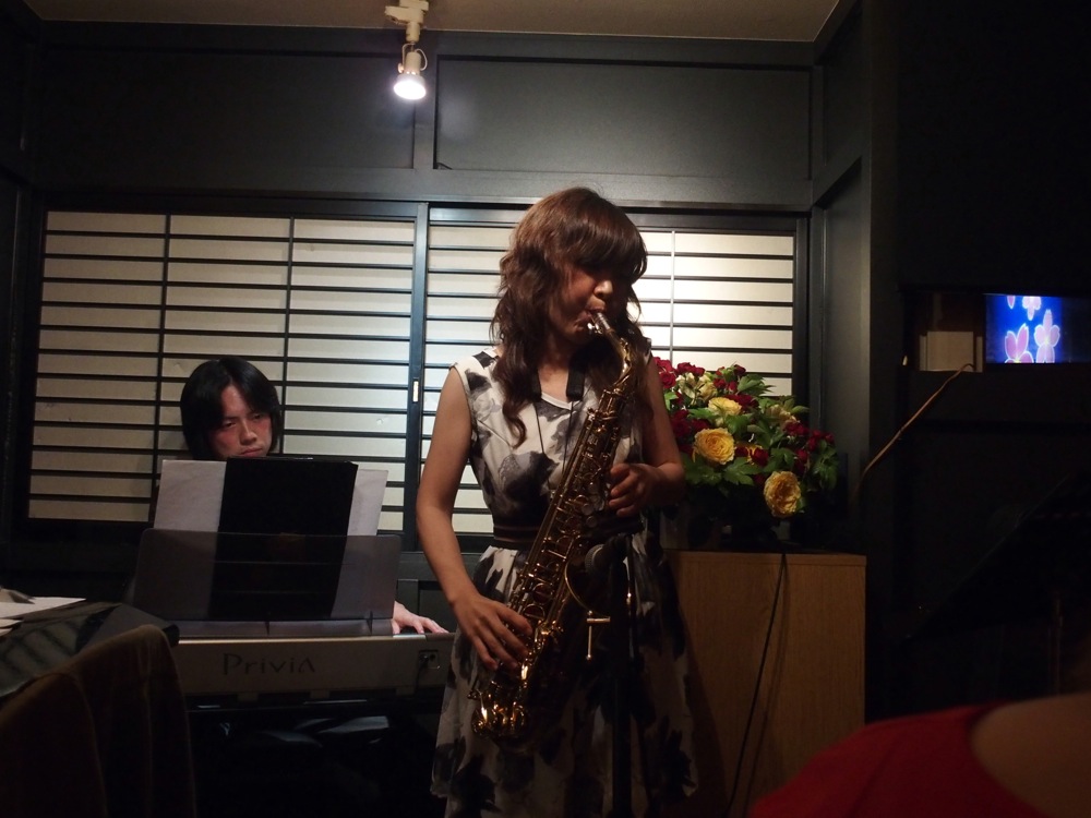 そして、この日のシャンパン(自分は白ワインを飲んでいますが)の証拠写真が上です。本当に有り難い事です…。ちなみにこの日は、夏子さんの方から御自身のオリジナルCDを渡されまして、それでは…と、自分のトリオCD『Voyaging』も進呈させて頂きました。お互いの刺激になりつつ、より良い演奏へと繋がればと思います。