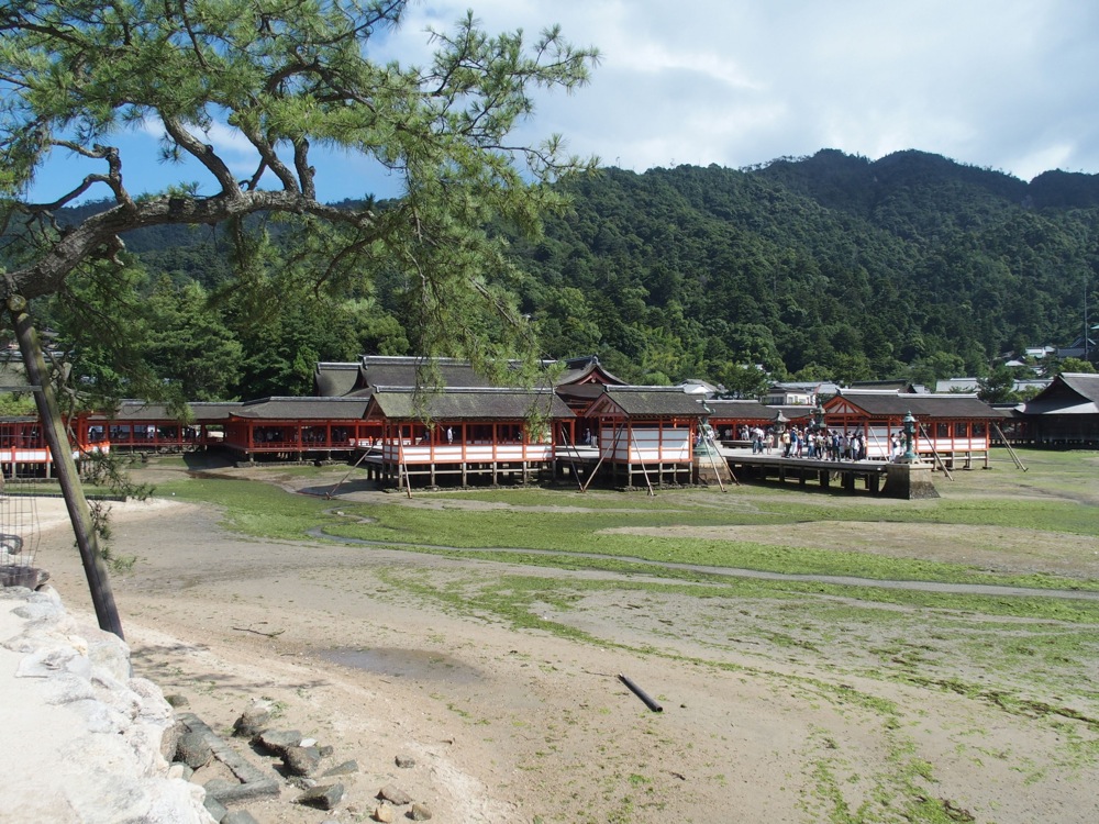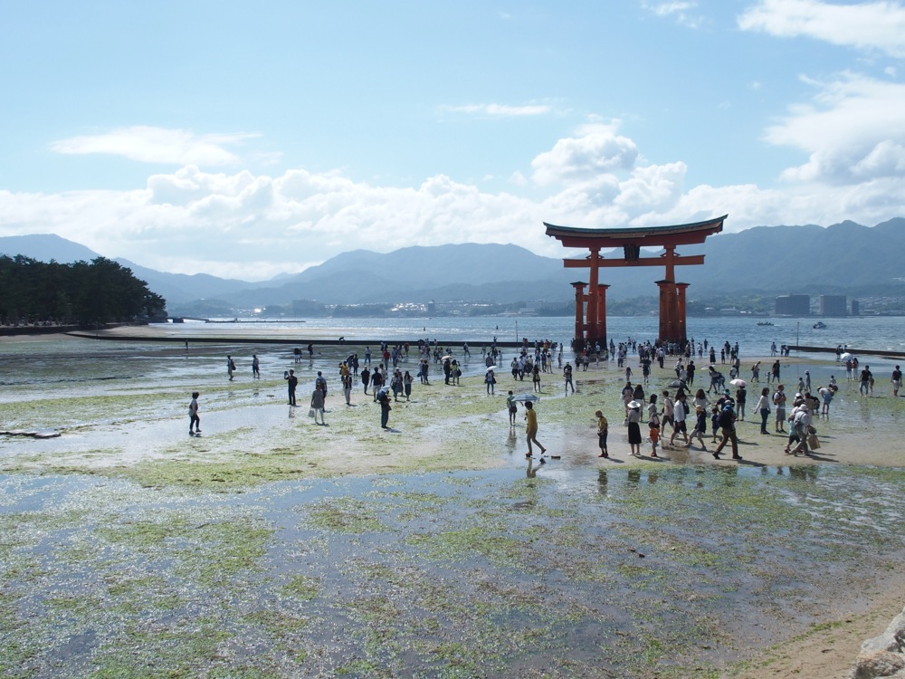 そして、広島の誇る一大観光地である宮島にも足を延ばしてきました。宮島に渡る前の宮島口には前回含め、これまで何度も足を運びましたが、船に乗って宮島に足を踏み入れたとなると、恐らく高校2年生の時に行った修学旅行以来の事になると思います。…なので、今回は厳島神社は勿論の事、思い切って紅葉谷を通って獅子岩や弥山まで行き、今まで最も宮島を味わった1日になったと思います。そのお陰で、着いた時は満潮(上写真参照)だった厳島神社が、帰りの時は干潮(下写真参照)になっており、1日で2つの景色を楽しめた事にもなりました。長い時間滞在した事へのプレゼントでも貰った気分になったものです(笑)。