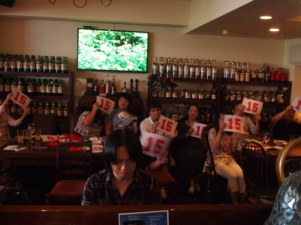ライブは前回と同じ Antique というお店で行われましたが、場所は移転しており、お店の規模的には前回より若干ひと回り小さくなったものの、丸本さんによる熱いライブは健在で(笑)、凱旋ライブらしい、地元の方達からの温かい声援を受けられた時間になりました。そして上の写真を見てもお分かりのように、先月東京で行われた自分達のワンマンライブ〔丸本達也、4年目のワンマンライブ参照〕のような光景も繰り広げられていました。特に、地元広島で“Fifteen”をお披露目出来たのは大きかったと思います。凱旋ライブも2度目となると、1度目以上の工夫が必要になるとは思うのですが、見事にその課題?はクリアした感じがありました(笑)。楽しい時間を、どうもありがとうございました!