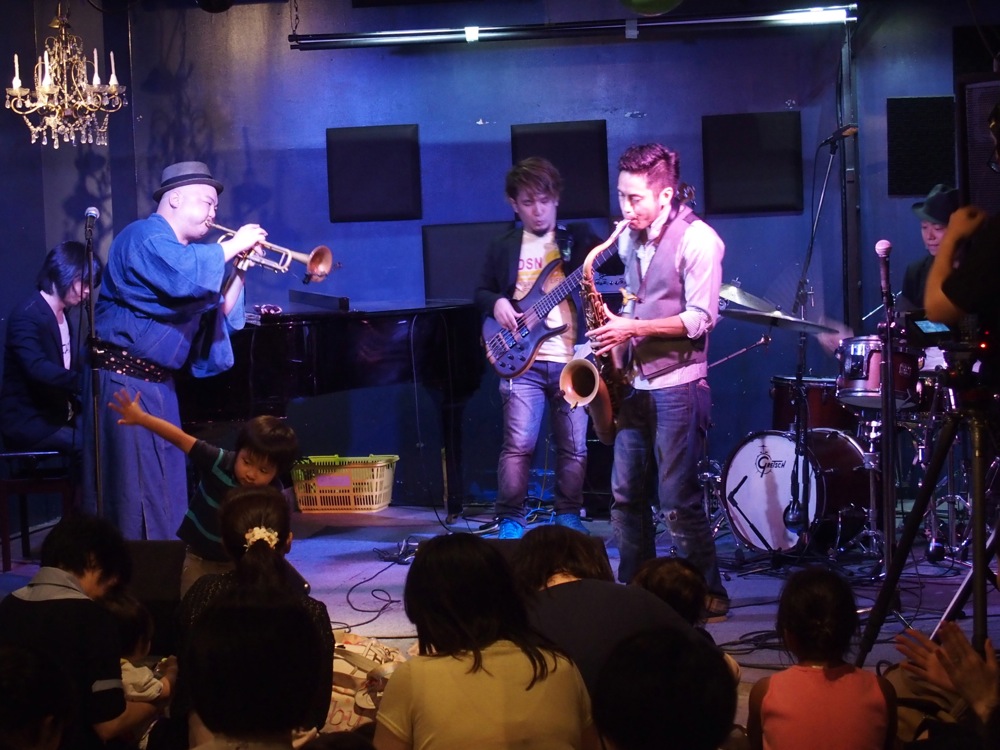 今回、自分達のステージの前で常に踊っていた子供がいまして、そのお陰で盛り上がりに拍車を掛けていた感じではありましたが(笑)、今回特に取り上げるべき点として、6、7、8月生まれのお母さんにサプライズでバースデー・ソングやカードを送った事でしょう。子供に…ではなく、お母さんに…という点に注目です。つまり、あくまでもこの mamaJAZZ の主役はママであり、その方達に少しでも喜んで貰えるようにという、運営側の配慮でもあったのです。いくらママが主役と言われても、子供と一緒にライブに来たら、やはり子供を中心に考えなければいけなくなるのは事実。そういった気持ちへの応援という意味も込められている事でしょう。これぞ mamaJAZZ らしい時間ではありませんか。