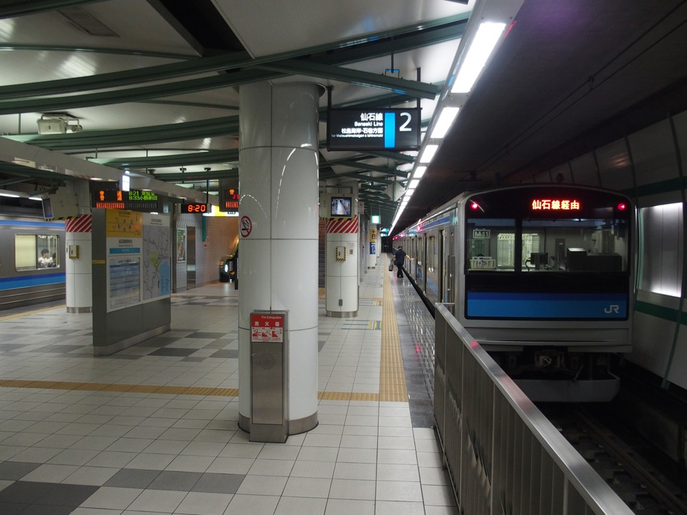 ターミナル駅となる仙台駅も、以前から新幹線やJRの多路線の駅とは少し離れた位置にありましたが、2000年に仙台駅〜陸前原ノ町駅間が地下化され、少しは別会社感は薄れたように思うものの、両線の乗り換えにはやはり少々時間を要します。また、この時に仙台駅〜あおば通駅間が延伸開業され、仙石線はあおば通駅〜石巻駅を結ぶ路線となりました。また、支線として陸前山下駅〜石巻港駅を結ぶ貨物線がありますが、旅客輸送を行っていないので今回は取り上げません。