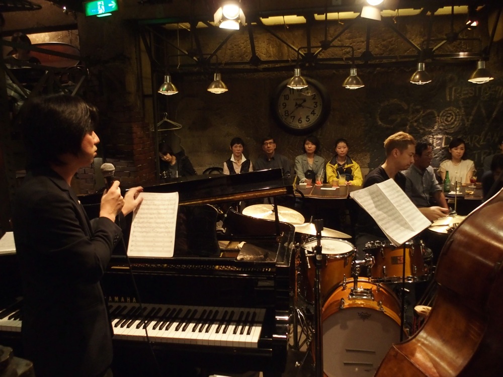 また、この日初披露となる、完全なる?新曲もやらせて頂きました。最近、色々と曲を作ってきて、どこかクラシックらしいフレーズや、ラテンのビート等、自分の好きなルーツの側面を用いた曲が多かったような気がしたのですが、今回はミディアム・スウィングの、いわゆるジャズらしい曲を作ってみたく、タイトルは“Timetable Tracker”と付けました。Timetable は時刻表の意味ですが、まあ、自分らしい曲という事で…(笑)。