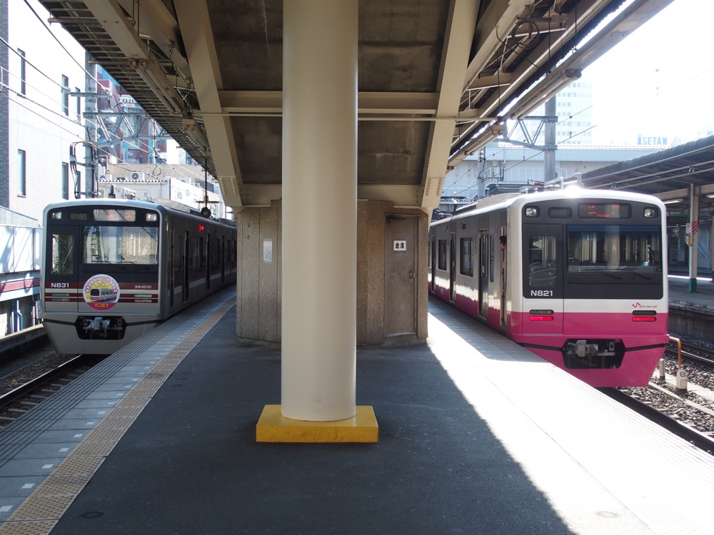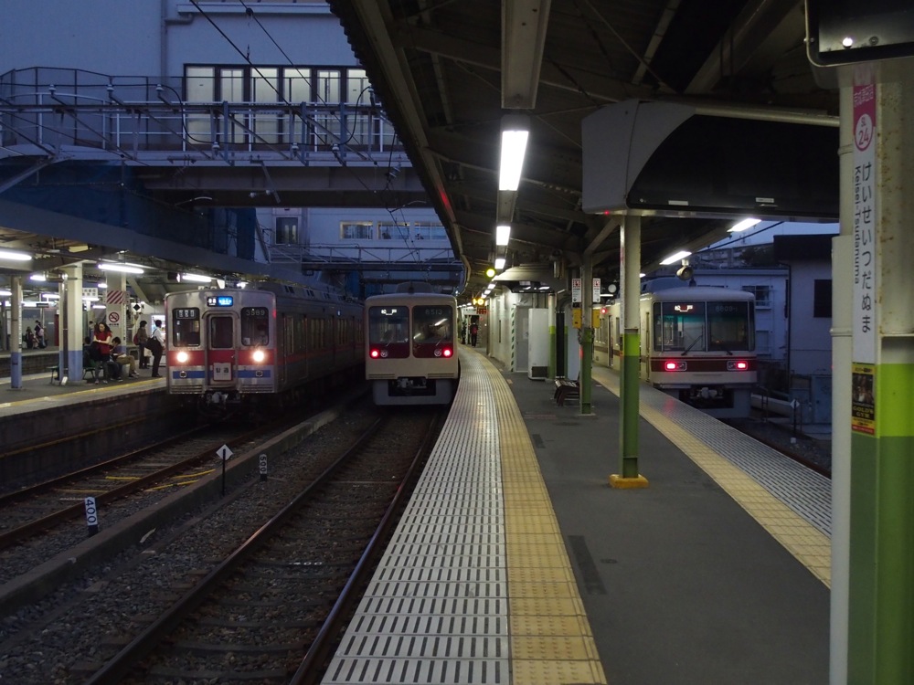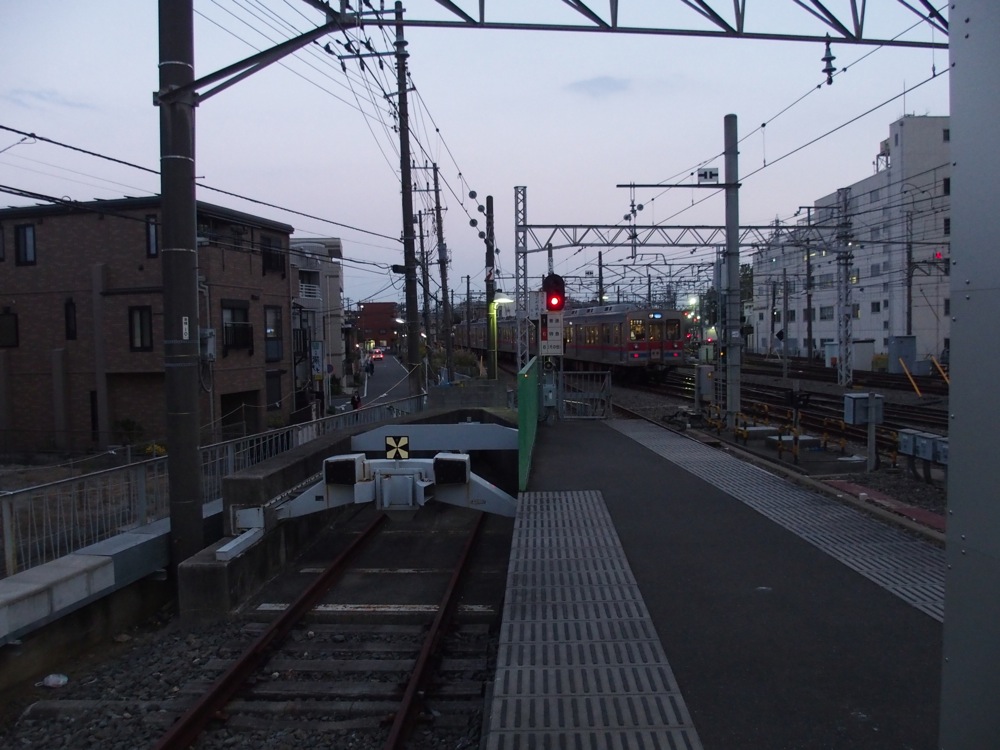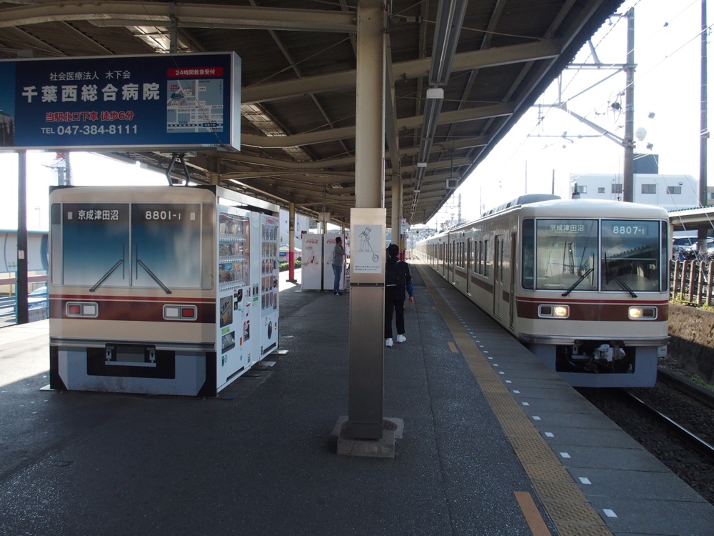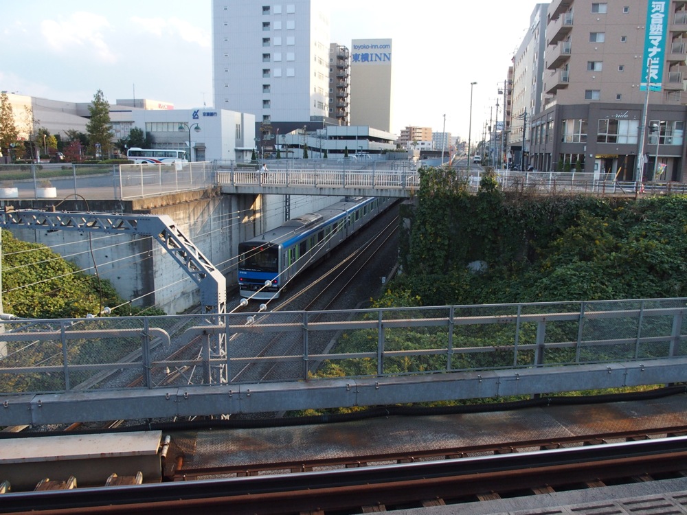 北習志野駅は習志野市ですが、この先船橋市に入り、習志野駅へと着きます。そして前原駅を過ぎると、ここでも大きくカーブして新津田沼駅へと入ります。繁華街の中の駅ですが、JRの津田沼駅とは400メートル程離れていて、ここは徒歩での連絡となります。…とは言え、乗り換え客は多く、それ故に繁華街も発展してきていると言えるのかもしれません。