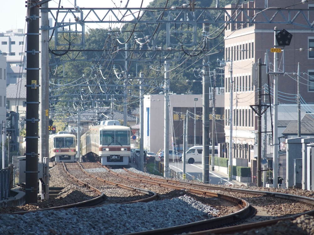 さて、松戸駅を出ると、常磐線と分かれて右に大きくカーブし、早速とばかり下総大地を登る勾配に差し掛かります。上り勾配は暫く続き、国道6号線を越えた先を頂点として、そのまま上本郷駅へと到着するのですが、この辺りは変化に富んだ所ですので、この区間を早速“さんぽ”してみましょう。勾配とカーブが連続するので、新京成電車の撮影地としても知られている区間でもあります。