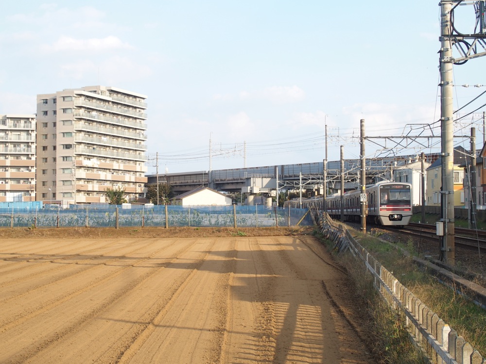 新鎌ケ谷駅を出ると急カーブして進路を南に変え、初富駅に至ります。高架化工事はこの辺りまで行われるようです。この先は畑や果樹園等の田園風景と、幾つもの団地街が続け様に見えてきて、周辺には学校も多いのか、東葉高速鉄道との乗り換え駅である北習志野駅では学生も多い印象を受けます。一部区間に、直線距離が続く部分もあるも、やはり基本的にはカーブが多い区間が続きます。