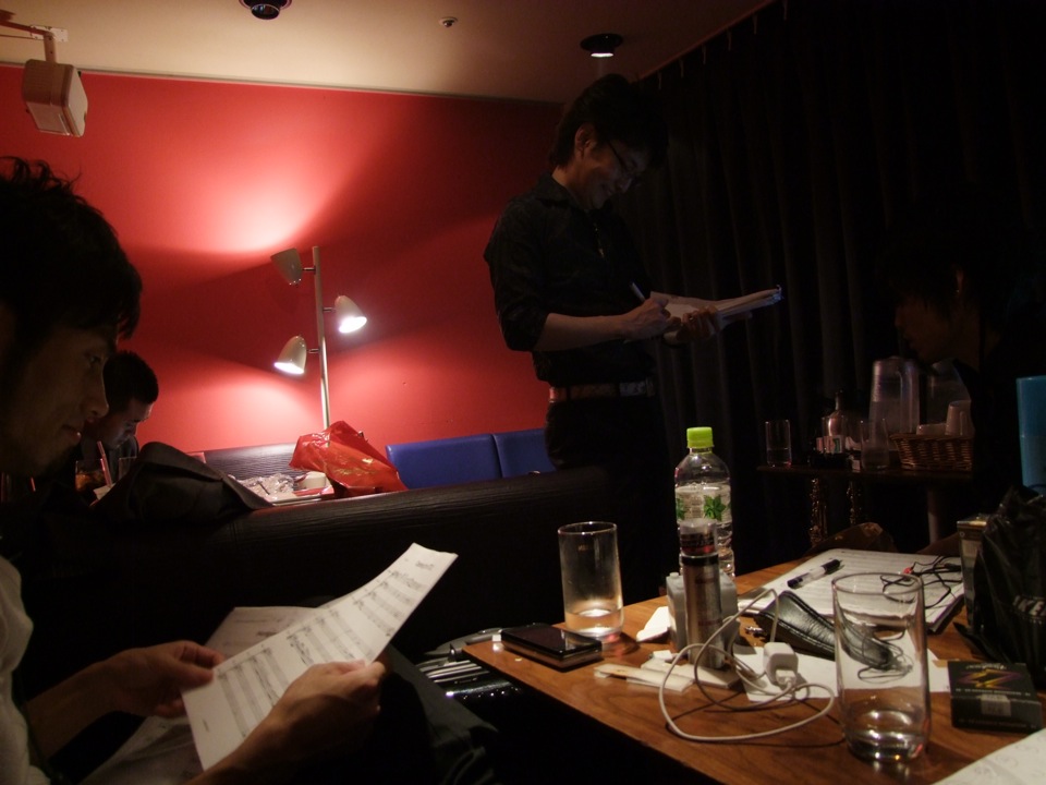 セッティングが終わればリハーサルが始まりますが、ただ単に音を合わせるだけでなく、動線の確認や、これからのステージの流れの説明も把握しておかなければなりません。また、これは出演者だけではなく、お店のスタッフにも理解しておいてほしい部分もあった為、正にお店との協調感や一体感が問われる時間ともなっていました…。それだけ、このライブに懸ける思いが強かったわけですが、ここまで出来て、ようやく本番を待つ状態になれるわけです。色々あって、この日はここまでが特に長い時間のように感じました。