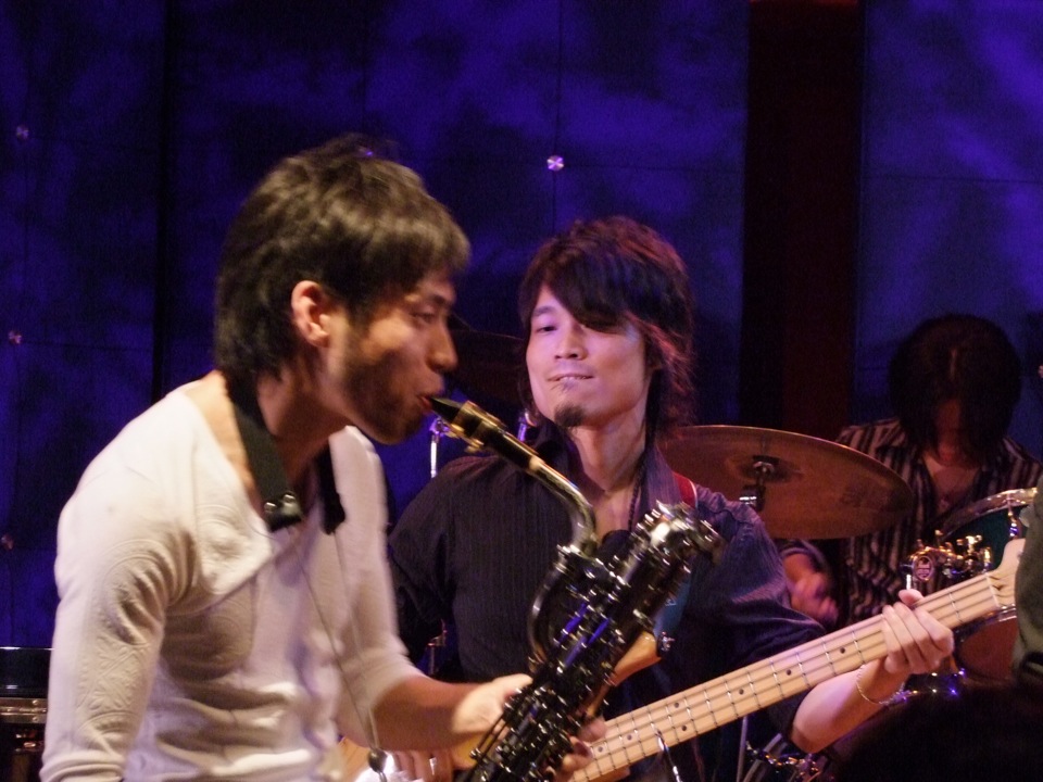 その後は、改めてブラス隊の皆さん方をお呼びして、2ステージ目のクライマックスへ…というか、この日のライブのクライマックス…と成り得る“眠りから覚めて”と、自分のオリジナル曲である“Hagatna”で、締めさせて頂きました。これらも常に熱い演奏であった事は間違い無く、サックスのお馴染みのソリはもちろん、ブラス隊のソリ、続けてそれぞれのソロ、もう最後まで畳み掛けていく感じです。休む暇などありません(笑)。