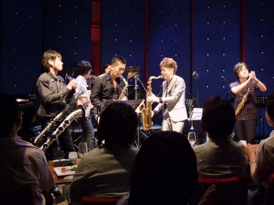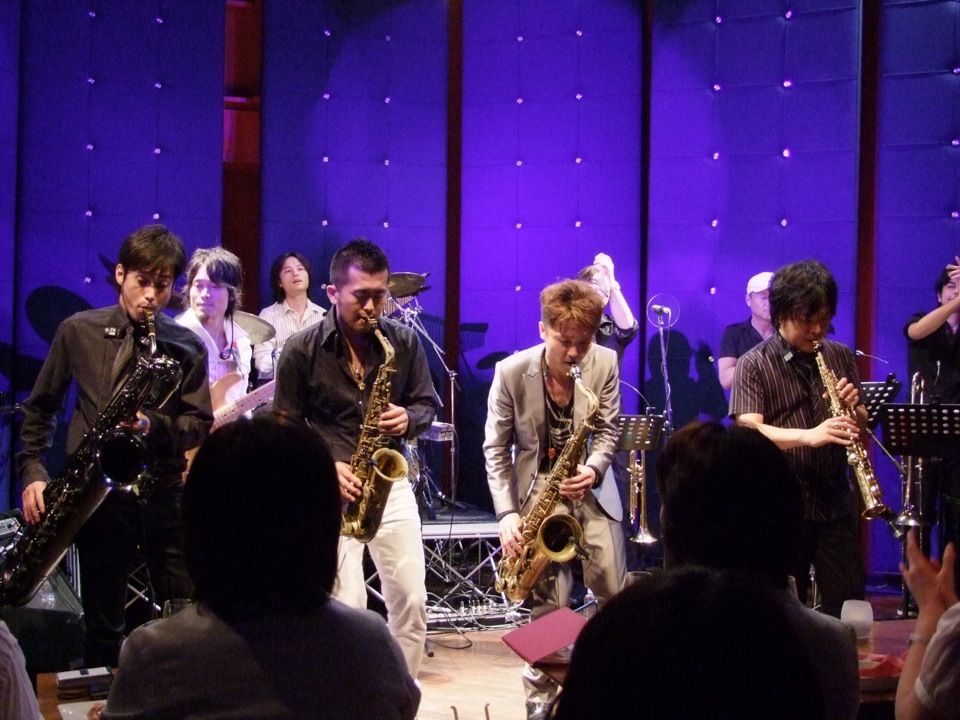 ここで本編は終わりですが、拍手が鳴り止みません…。GG が結成10年を迎えるにあたって、本当にお客さんに支えられてここまでやってきた。そんな思いが交錯する時間になりましたが、ここでサックス隊の4人だけで1曲、サックス・アンサンブルの“Song For Lovers”という、副田君の、言わばクラシック風のオリジナル曲を披露しました。…やはり、GG の原点はここにある。1ステージ目のオープニングでも書きましたが、GG とクラシックというのは、自分が思っている以上に切り離せない関係にあるのかな…と思いました。今後も、是非こんな曲を聴かせてほしいなと、素直に思っている自分がいたものです。