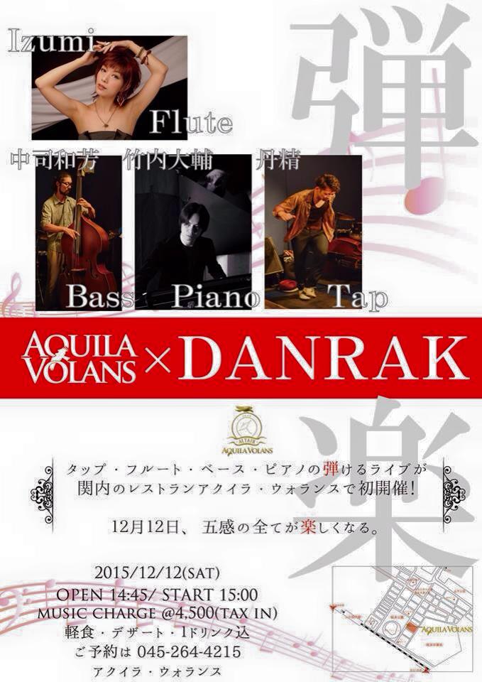 Member…《弾楽》(Fl)いづみ、(Tap Dancer)丹精、(Key)竹内大輔、(B)中司和芳