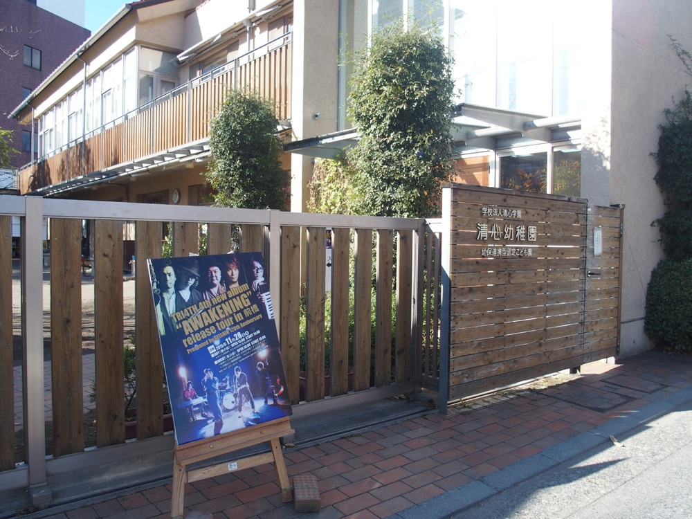 そして、現地に着いて驚きました。幼稚園での演奏…という事で、失礼ながら大した演奏環境は期待していなかったのですが、グランドピアノを常駐させ、音響や照明も完備している立派なホールのような場所に案内されるではないですか…。これが幼稚園内に存在している事に、ただ者ではないものを感じたのは言うまでも無いでしょう…(笑)。今の建物になってからは10年ぐらいが経っているようですが、こうした場所を提供している事に本当に感心させられました。表には立派なライブ看板も立てて頂いており、とても時間を掛けて歓迎して頂いている事が嬉しかったです。
