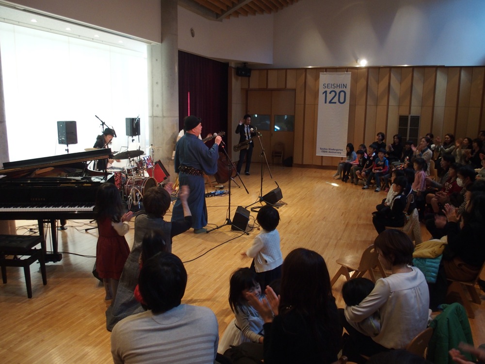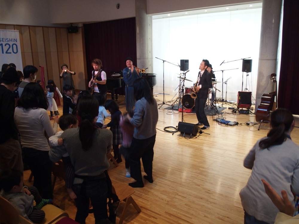 最初は静かな雰囲気を予想した清心幼稚園でのライブでしたが、蓋を開けてみれば、今までのどの会場にも引けを取らない程、盛り上がった1日になったと思います。お客さんは勿論の事、この清心幼稚園側のスタッフの方からも大好評で、とても遣り甲斐のある時間を過ごさせて頂いたのだと思いました。皆、本気で楽しんでくれるので、自然と自分達も誠心誠意込めた演奏へと繋がっていけるのです。