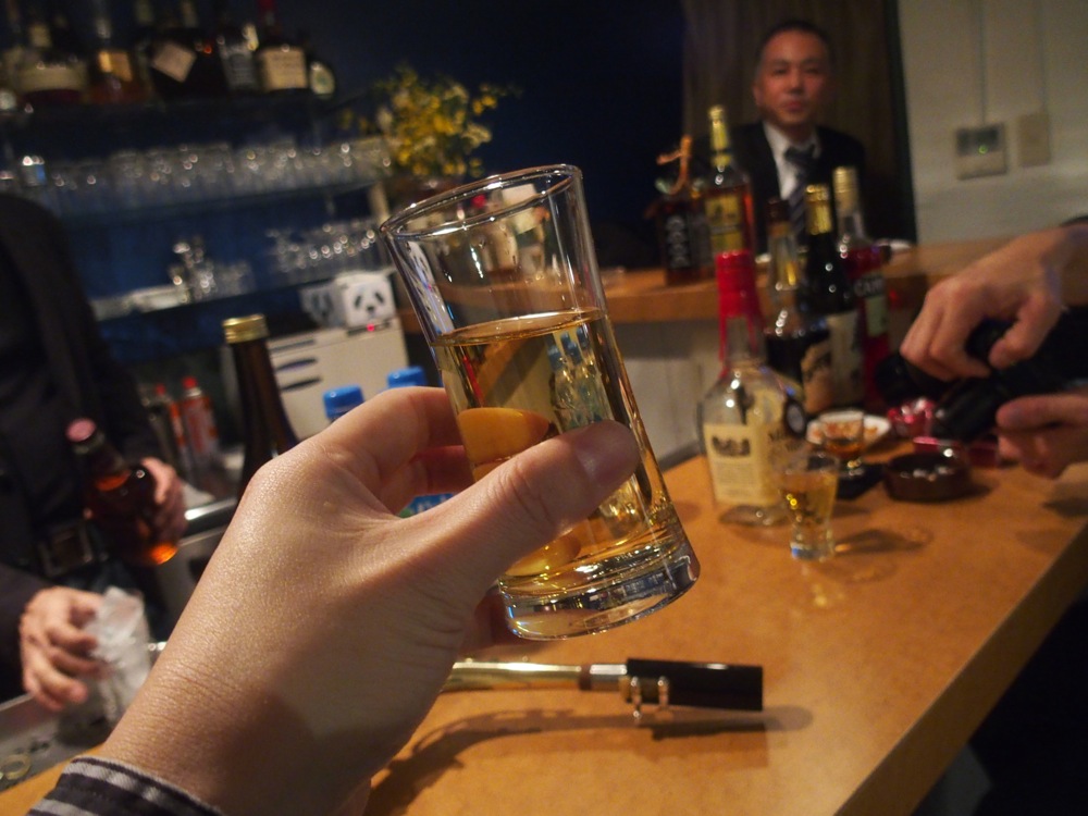 初営業は12月7日(月)との事でしたが、自分がお店に行けたのは先日の16日(水)が最初でした。つまり、もう初営業から1週間以上は経っていたので、それなりにお店も落ち着いてきていて、譲二さんもママも慣れが生じてきている辺りだったのかもしれません。…とは言え、お店のドアの前に置かれていた豪華なお花を始め、お祝い品等がまだ沢山置かれており、やはりオープンしたてというのをダイレクトに感じさせてくれます。店内はヤシの木をモチーフにした置物があり、壁が全体的に白色であるのと相まって、少し南国的な雰囲気を醸し出しているような印象がありました。