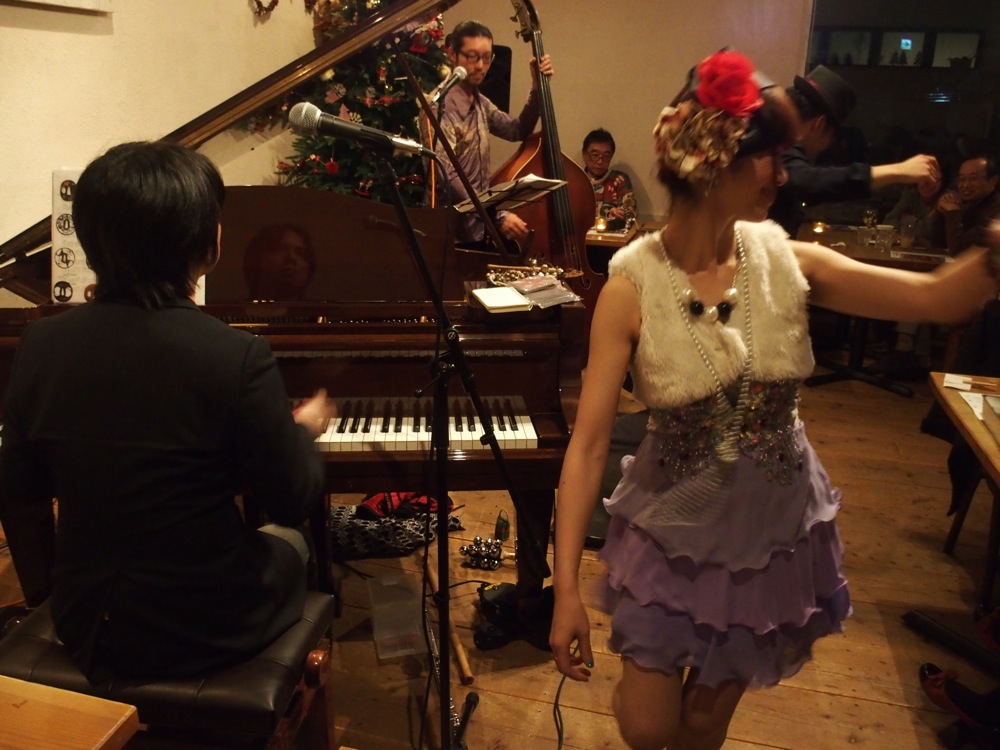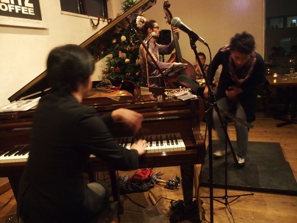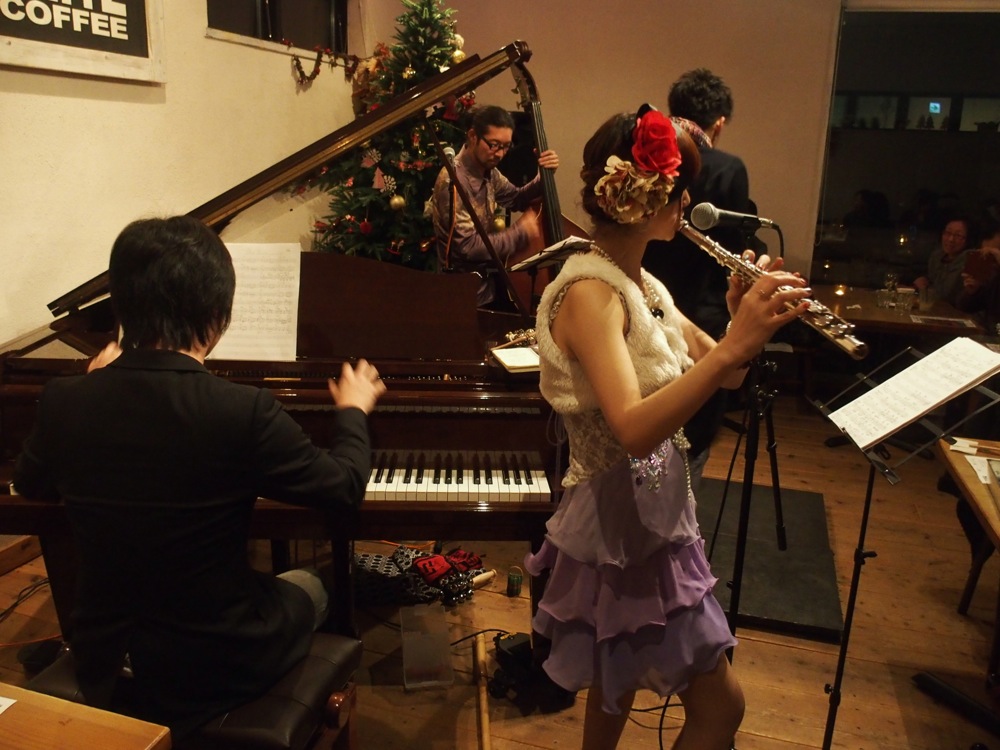 そして、このお店にはグランドピアノも存在します。店内も、凄く広い…というわけではないものの、適度な広さと言いますか、自分達のライブスペース的には丁度良い大きさのお店だとも思いますし、ステージが客席の目の前に用意されるのも、このお店ならではの特徴とも言えるでしょう。そして、この日はクリスマスライブと銘打っている事もあり、お客さんにはクリスマススペシャルプレートも用意されていました。正に、食べて、見て、聴いて…という状態であり、色々な満足感が得られる1日になったのではないかと思います。