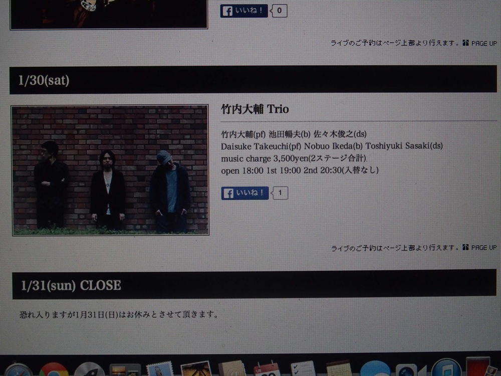 …とは言え、仕事が無いから家でのんびり…というわけにもいきませんでした…。最近の忙しさを理由に、今まで後回しにしてしまった、溜まりに溜まった作業を1つ1つ片付けていくので精一杯の1日でもありました…。そして、明日は今年最初となる竹内大輔ピアノトリオのライブです!…こちらの準備、練習もしなくてはならず、なかなか大変ですが(つまり、演奏とは離れていなかった…笑)、久し振りのトリオでのライブ、どうぞ楽しみにしていて下さい。