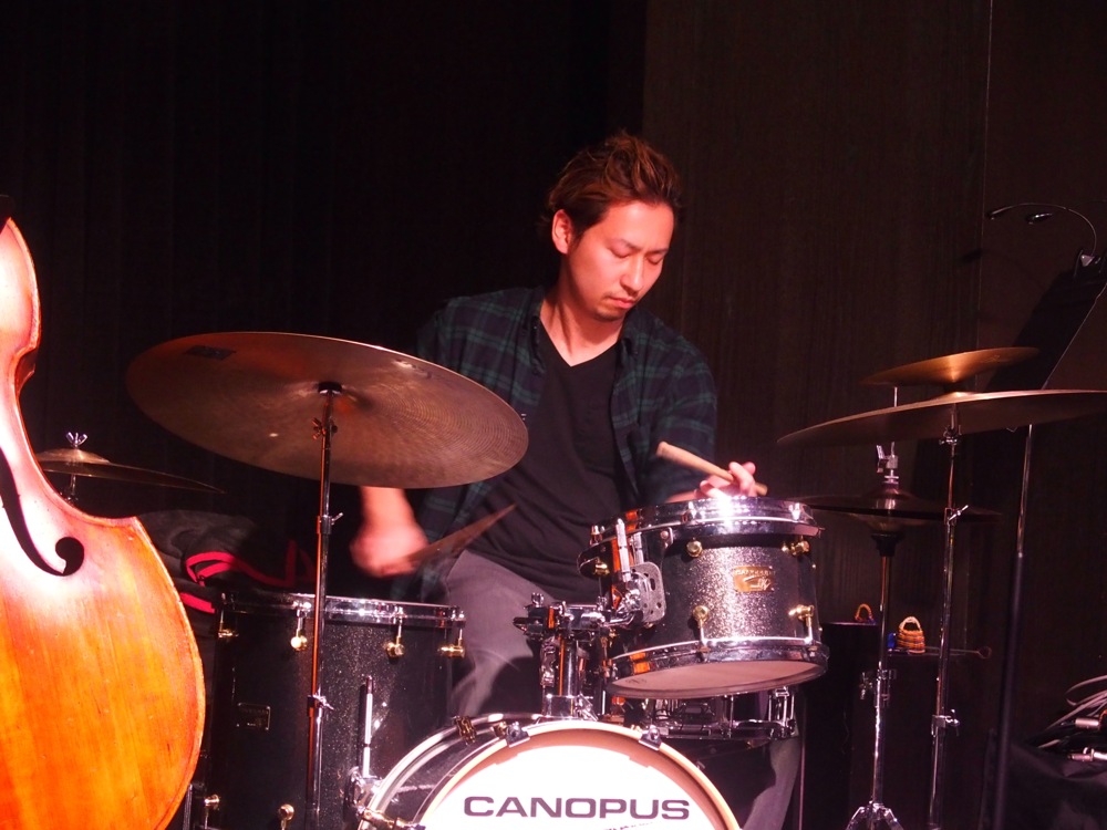 久し振りの曲というと、1枚目のCD『Pictures』から“Final Approach”、“Guernica”(初期バージョン)、2枚目のCD『Fingers Dance』から“Water Lily”辺りでしょうか。この曲達のCDリリース時は本当によく演奏したものでしたが、最近ではやはり新しめの曲を頻繁に取り上げるという事もあって、恐らく1年〜2年振りの演奏になっていたかもしれません。面白かったのは、その久し振りの演奏でも、身体に入るべき点は既に入っているという事で、特に打ち合わせが無くてもキメが合ったり、ダイナミクスをメンバー内で共有出来たり、そして遊べるところは遊んで…と、既に曲を通して会話が出来ているところでした。これぞ10周年を迎えたバンドの醍醐味と言いますか、今まで培った共演が生きているところでもありましょう。勿論、それぞれ攻めるところは攻めて、曲の新しい解釈をもって挑戦していきます。こうやって、バンドと共に曲が成長していけるのも有り難い事なのだと思います。