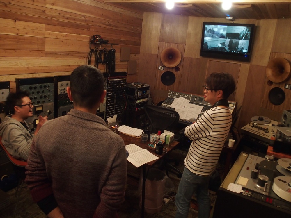 レコーディング・スタジオは、お馴染みの Dede スタジオにて…。敢えてブースを取り払ったこのスタジオにて、敢えてそれぞれの音を被らせる方向で進めます。個人的に、最近は副田君とライブをする機会が少なかったが故、最近の音楽活動の進捗度を知らなかったのですが、いつの間にか沢山のオリジナル曲が制作されており、それは御自分がリーダーを務めるレコーディングという流れになるのも自然だとは思えました。