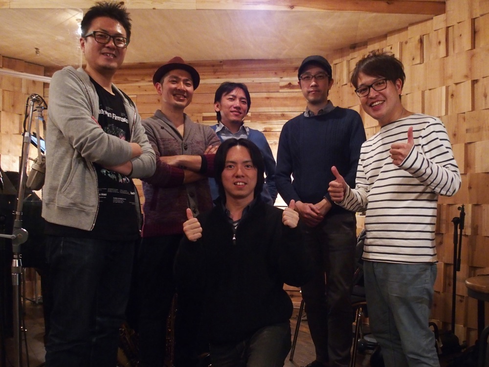 メンバーは、サックスが副田君、ピアノに自分、ギターに藤井進一君、ベースに池尻洋史君、そしてドラムに二本松義史さんという面々で、所謂ジャズ・クインテットの編成です。…そう、Dede の録音スタイルに合わせ、今回は正にジャズらしいサウンドを目指しており、曲の構成もメンバーそれぞれがアドリブをたっぷり取ったりと、ジャズマナーに沿った方向性がそこにはありました。最近自分が手伝ったレコーディングの中では逆に珍しいぐらい、ストレートにジャズと向かい合った作品になるかもしれません。
