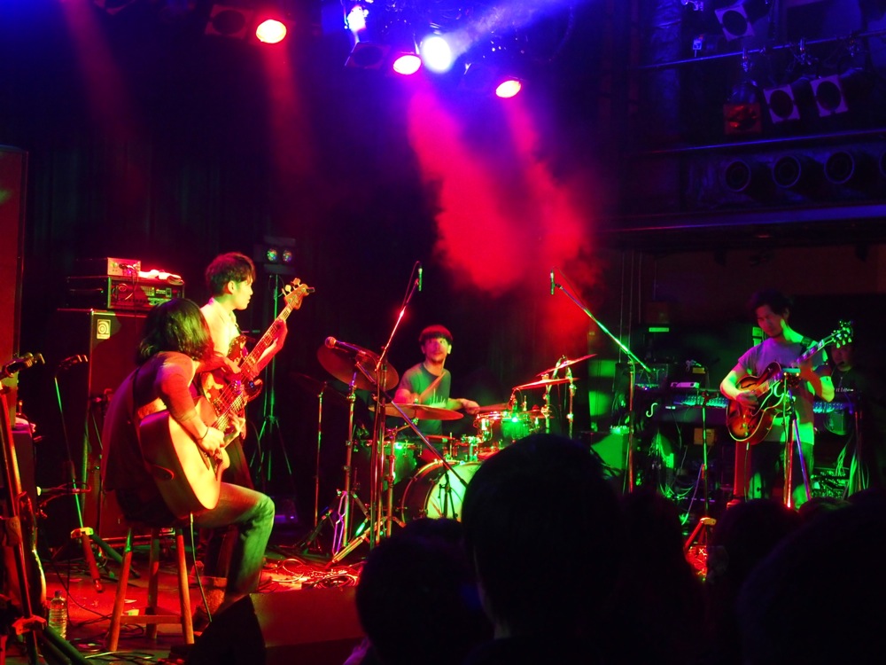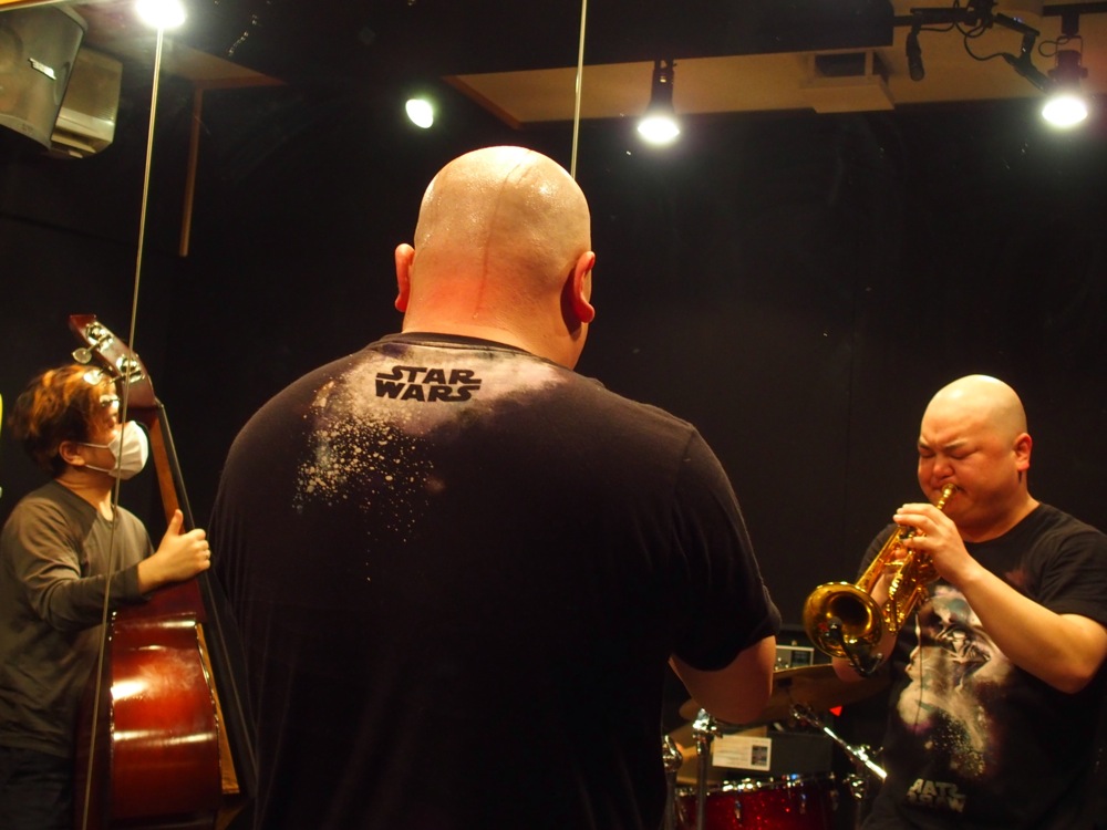 前述のように、この日は全4組のバンドが出演となったわけですが、tio が1番目で、自分達はその次の2番目という順番でした。どちらかというとイベントの前半部分を担当しているわけでもありますが、とにかく全力でステージにぶつかっていきたいものでした。1番目の tio の演奏を見ながら、徐々に自分達がステージ上にいる時のイメージを作っていきます。既にお客さんは満員御礼状態。この上ない舞台ではありませんか。