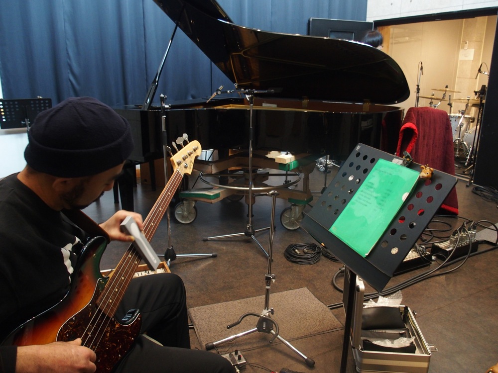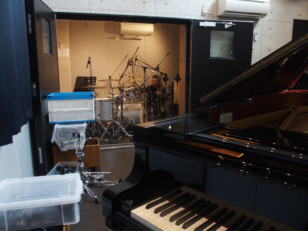 …変わりに、今までピアノがあった部屋にドラムを入れ、狭い部屋ならではのデッドな感じを表現させたりと、録音の時点で面白い環境を整えておきます。ベースもフレットレスも多用させたりと、色々な面で進化が見られるレコーディングになったのではないでしょうか。
