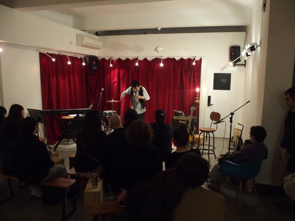 2日目は、これまでも香港ツアーでもお世話になった、ボーカルのシャンディのブッキングによるもので、太子(プリンスエドワード)走馬燈というお店でのライブでした。ギャラリーのような雰囲気のこのお店では、楽器や音響機材を改めて配置してのライブとなりましたが、この手作りの感じが良かったです。シャンディ発信のライブでもあったので、以前、香港で知り合ったルイーナやロッド等も遊びに来てくれて(左上写真参照)、楽しい時間を過ごせました。ここでもシャンディやロッドを始め、ギターや二胡奏者とのコラボもあり、現地のミュージシャンとのセッションを肌で感じる事が出来ました。