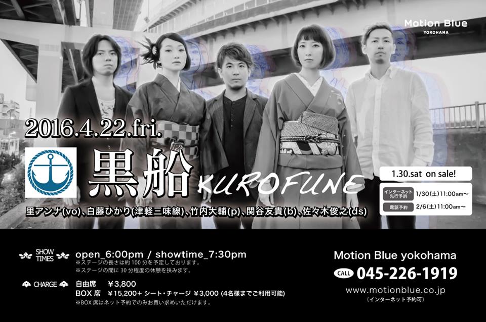 Member…≪黒船≫(B)関谷友貴、(Vo)里アンナ、(津軽三味線)白藤ひかり、