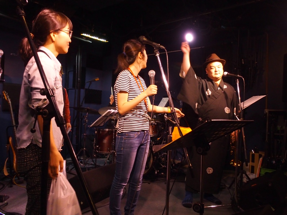 今回も、前回と同じようにゲスト・ボーカルを加えてステージを行いましたが、今回は皆さん念願の(笑)男性ボーカリスト、しなやかな且つ、パワフルなファルセットボイスに定評がある DAISUKE さんをお呼びしました。DAISUKE さんのオリジナル曲を始め、その特徴ある美声を生かせる Earth, Wind & Fire の曲をお送りする等、mamaJAZZ もこれまでに無い盛り上がりを見せていたように思いました。