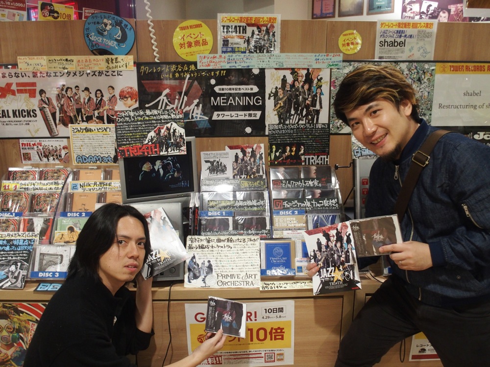 この日のCD販売も好調でした。改めて言わせて頂きますが、今回のアルバムは、全12曲入りで、そのうち11曲は新録にも関わらず、お値段は税抜き価格で1000円なのです。本当にお買い得…と言ってしまえばそれまでなのですが、それ程多くの方に届いてほしい…という願いがあってのものでもありました。また、ベスト盤と言っているように、今までの自分達の曲を中心にセルフカバー…という形になっているわけですが、現在の自分達のサウンドを重ねる事で、また新たな世界観が生まれる結果にもなったという事が大きいと思うのです…。曲自体は前からあるものなのですが、そこにアレンジや曲順を練る事によって、TRI4TH の新たな側面を見出だす事にも繋がっているように思うのです。これは、1曲1曲の潜在的な力が大きいのかもしれません。自分達自身でも新たに気付かされる魅力があり、TRI4TH の持つオリジナル曲の大切さを感じさせる切っ掛けにもなったと思います。このタイミングでベスト盤というものをリリース出来た事に、改めて感謝です!