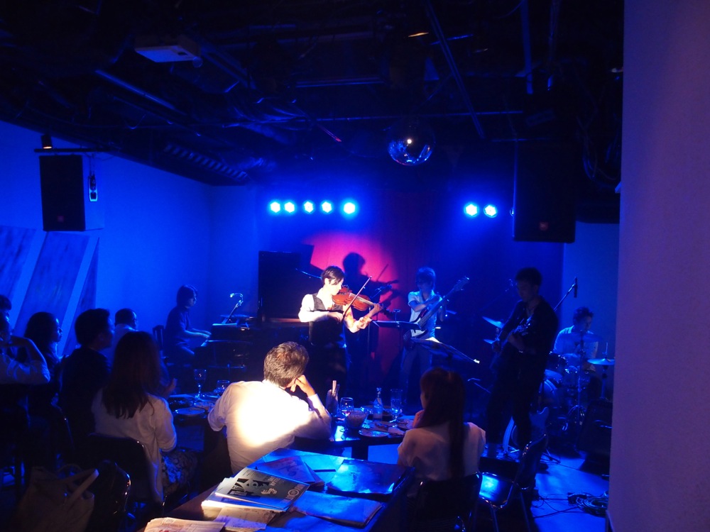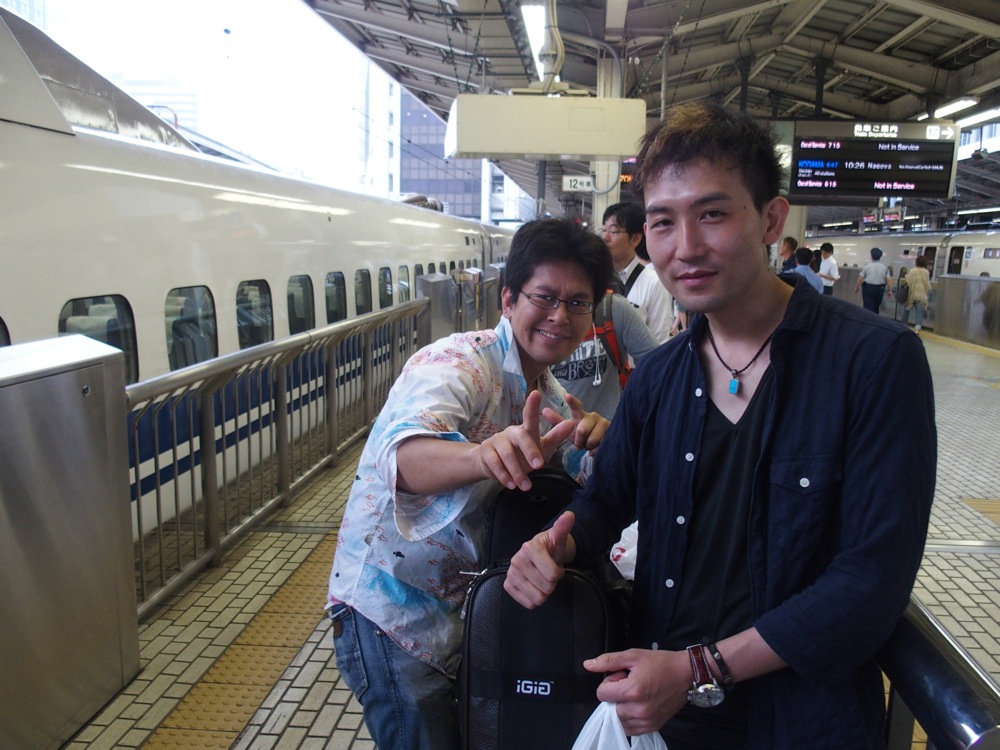 今回の演奏メンバーは、この時に既に何度も御一緒していた5人。バイオリンの Tsumuzi 君を筆頭に、ピアノに自分、ギターに侑音君、ベースに太田太君、ドラムに津島周平さんという面々です。Tsumuzi 君と太田君とは現地合流になっており、自分も含めた残りの3人で東京駅に集合して、新幹線で大阪へと向かったのでした。