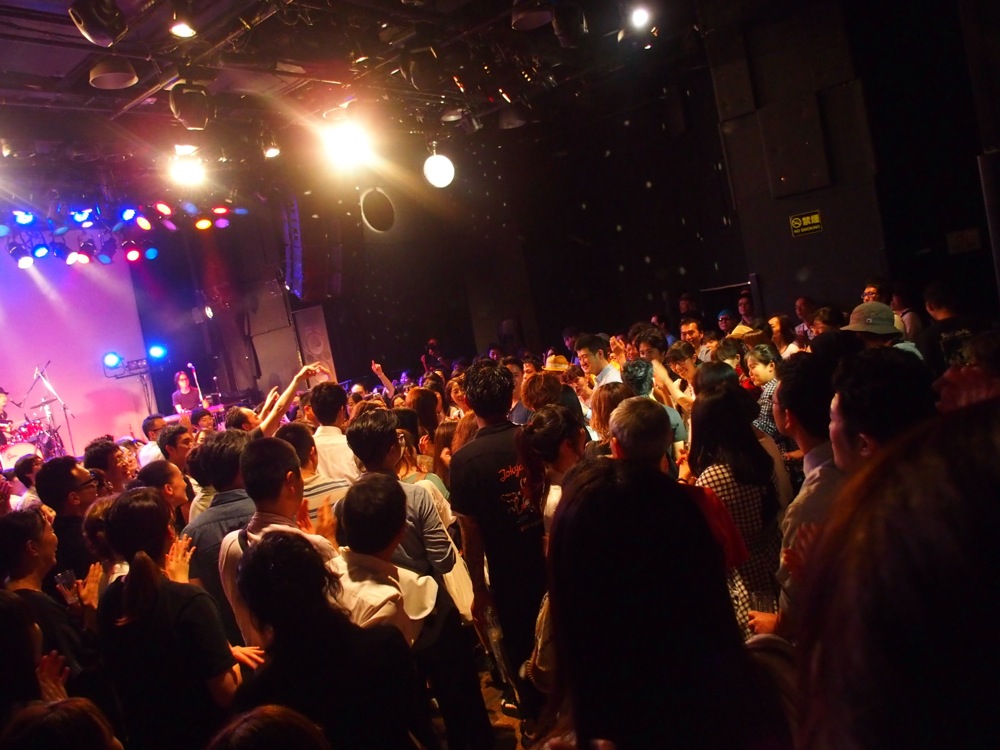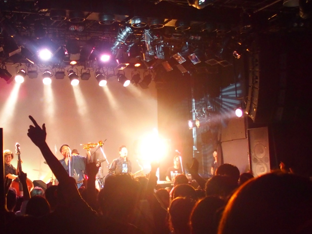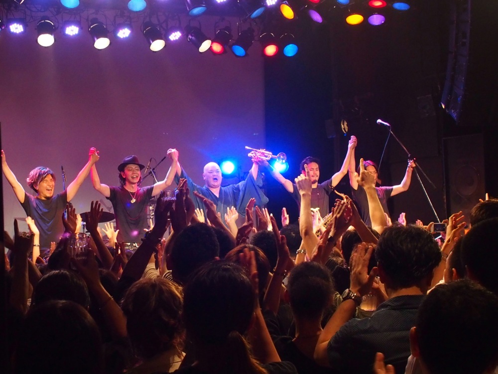 …ステージに上がって対面した、多くの人、人、人…。有り難過ぎる光景でした。皆、自分達のライブを聴きに、この場に足を運んで来て頂いていて、そして音楽に身体を預けて踊ってくれています。当然、自分達の演奏も自然にヒートアップしていきますが、そもそもが最初から熱く臨んでいっただけに、自分でもよく分からないような熱量に上がっていく感じがしました。演奏が楽しい、ライブというこの空間が楽しい、この時間を少しでも長く感じていたい…と冷静なようで熱くなっている自分がいたものでした。