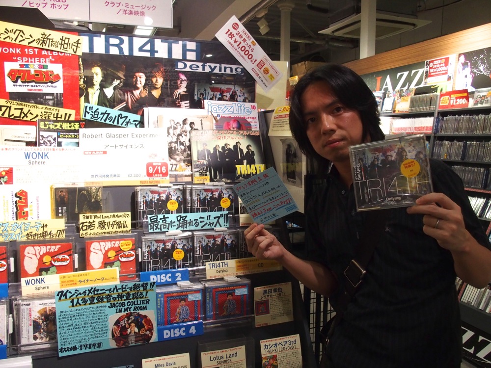 まだまだ各店舗をお邪魔してみようかと思っています。特に、現在タワーレコード渋谷店は、ジャズフロアとなっている6階がメンテナンス中であり、他のジャンルの隙間を縫うように3階と1階に展開がなされているようでなので、メンテナンス終了後にはまた訪れたいものですね。…というわけで改めて、『Defying』をどうぞよろしくお願いします!