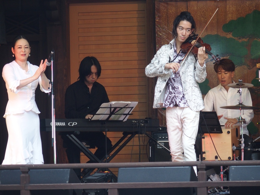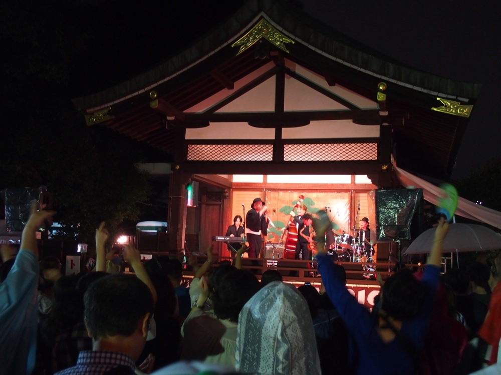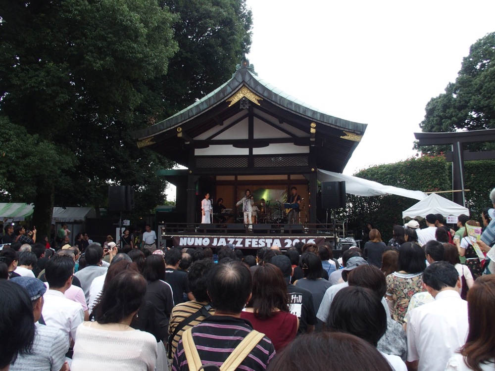 18日の朝一の飛行機で東京に戻ってきた自分は、毎年恒例の NUNO JAZZ FESTA に出演する為に、お昼過ぎには会場となる沼袋氷川神社に向かいました。ここで出演させて頂いたのは、バイオリンの Tsumuzi 君のバンドと、TRI4TH!…どちらも念願の出演となっており、熱いお客さんと熱い時間を過ごさせて頂いたのでした。後半は雨も降ってきてしまいましたが、それも吹き飛ぶような盛り上がり度でした。