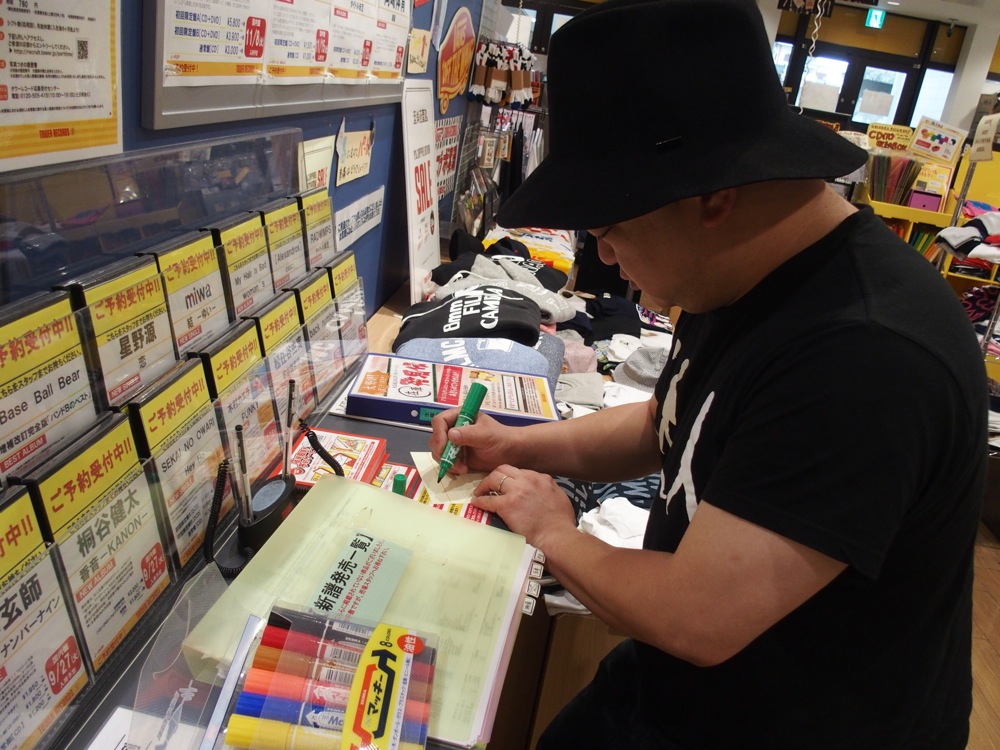 …そんな時、織田君自身から連絡がありました。メンバーと一緒に行動してたと思っていたのですが、実は東京で仕事があって、新幹線で先に東京に帰ろうと試みるも、台風で瀬戸大橋が超えられず、結局未だに高松に留まっているとの事…(笑)。何だかよく分かりませんが、せっかくなので落ち合い、自分達のCDを展開して下さっている高松市内のタワーレコード高松丸亀町店に挨拶をしに行ってきました。展開に有り難みを感じつつ、その頃にはもう台風も過ぎ去り、天気も回復してきた様子です。