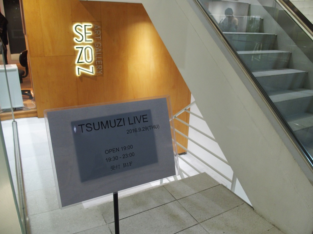 場所は、Tsumuzi 君お気に入りの表参道セゾンアートギャラリーにてで、今年の2月26日にもここでライブを行っています〔Tsumuzi、二二六スペシャルライブ参照〕。ギャラリーという場所を生かし、当日はライブだけでなく、アフター・パーティー等も盛り込み、お客さんと一緒にリリース祝いを楽しむ空間が用意されていました。