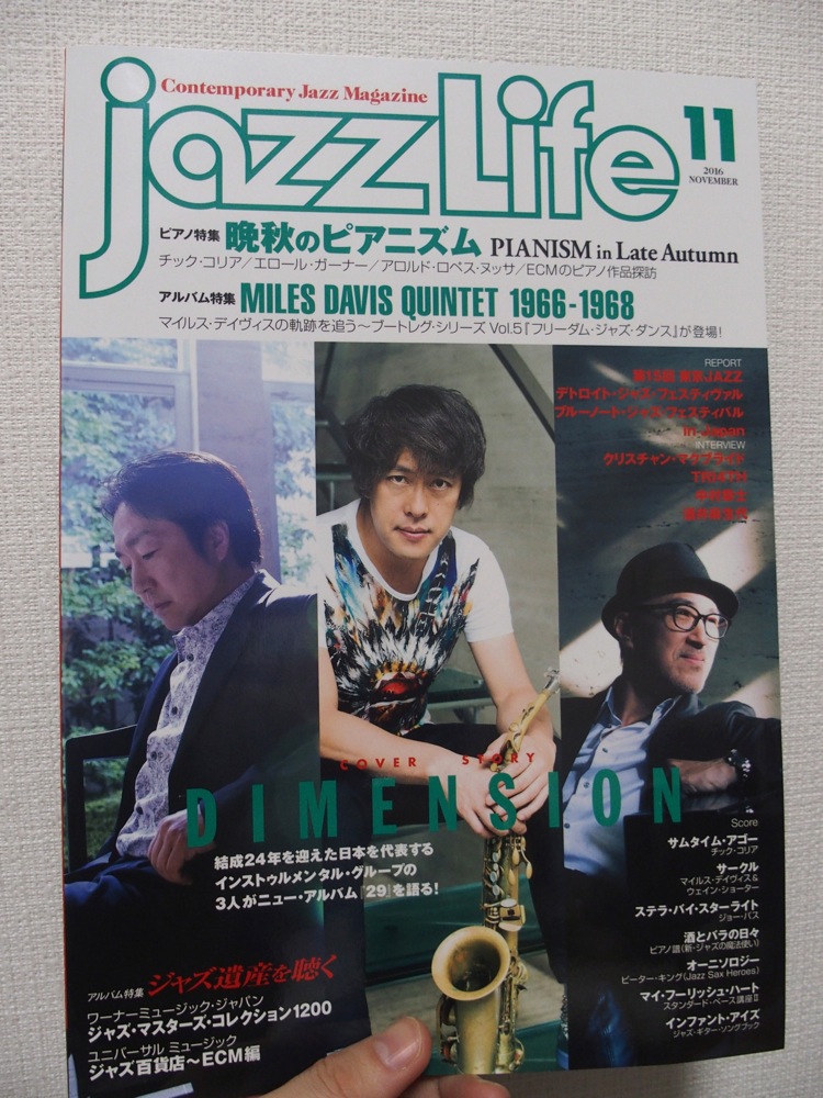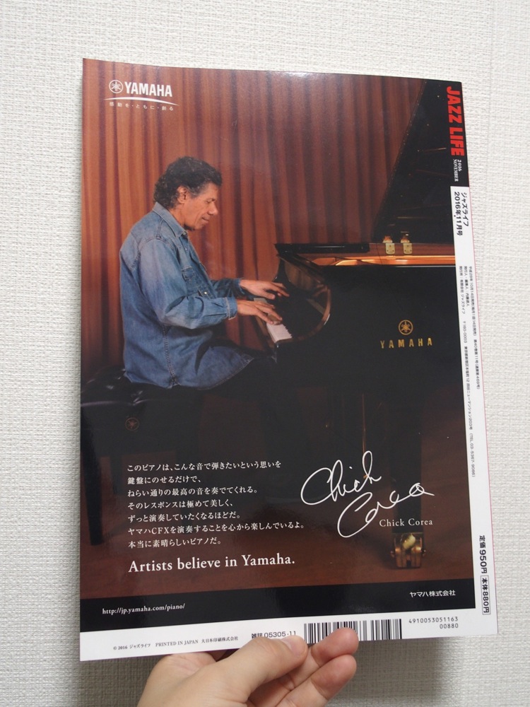 レコーディング時や、ライブ時の使用楽器機材等が書いてあるのも、jazz Life らしい所かもしれません。それらも含めてお楽しみ頂けたらと思います。また、この11月号の特集の1つに、『晩秋のピアニズム』という興味深い特集があり、その中でも先月9月に自分もライブを見に行かせて頂いた、チック・コリア・トリロジー・ライブ〔チック・コリア、初ライブ鑑賞参照〕について書かれていたのは何だか嬉しかったです(自分が見に行ったステージの日ではなかったですが、逆に、他の日のセットリストを比較出来たりして良かったです)。
