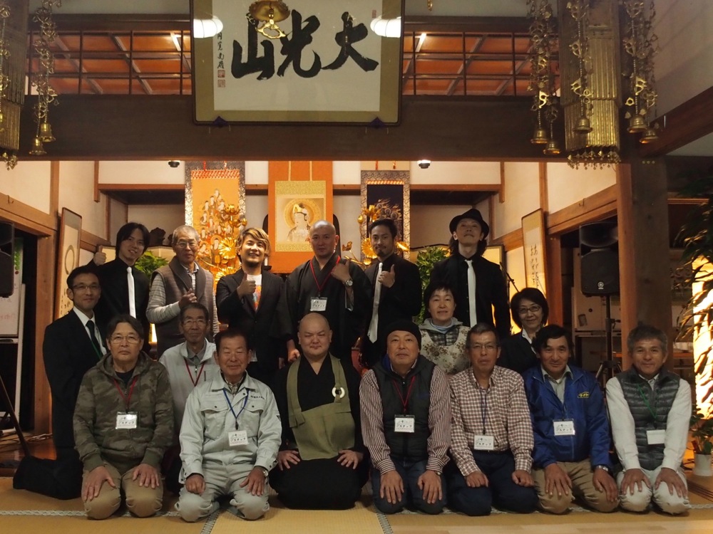 今回のライブは勿論、座席のあるスタイルで行いましたが、やはり TRI4TH のライブなのですから、後半は皆で立ち上がって(出来る範囲で…笑)楽しく盛り上がっていきたいところです。それはお寺の本堂という環境でも同じ事で、“Dance 'em All”で皆で踊って動いて、激しく身体を動かしながら音楽を楽しく共有していきました。最後の最後には住職もステージに呼び出して、織田師匠と共にハイジャンプで締め括ったのでした。なんと素晴らしい瞬間でありましょうか。正に、『寺ごころ』ここに有り…というシーンでした。