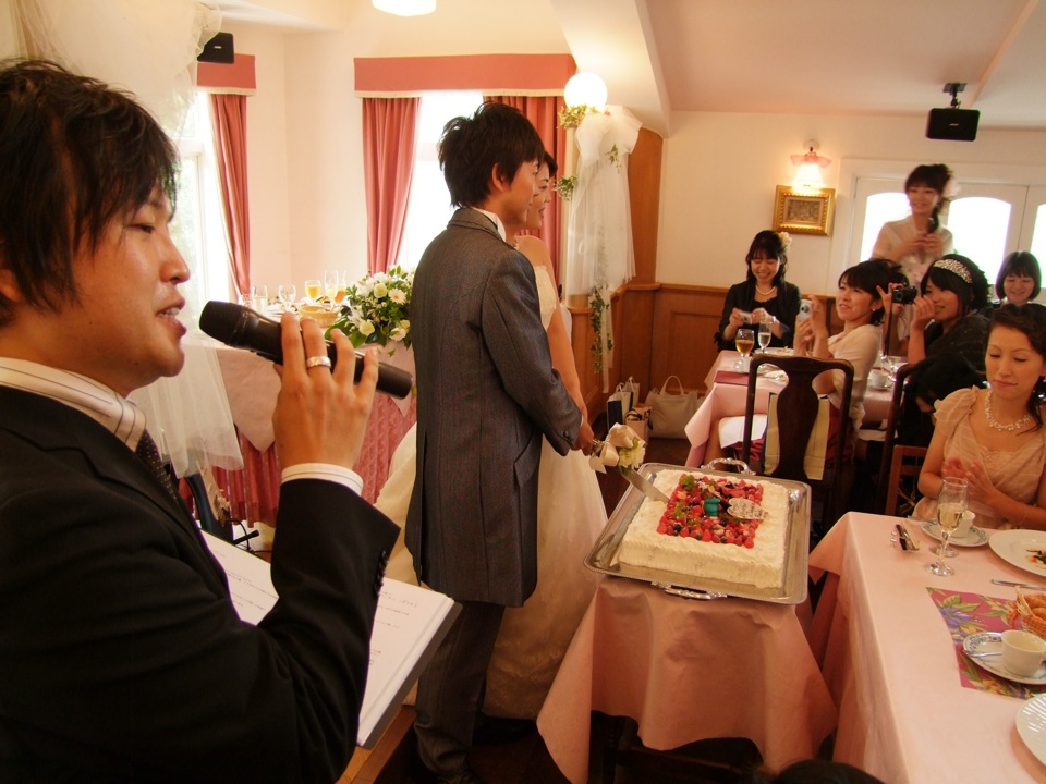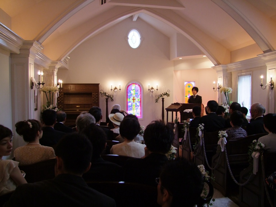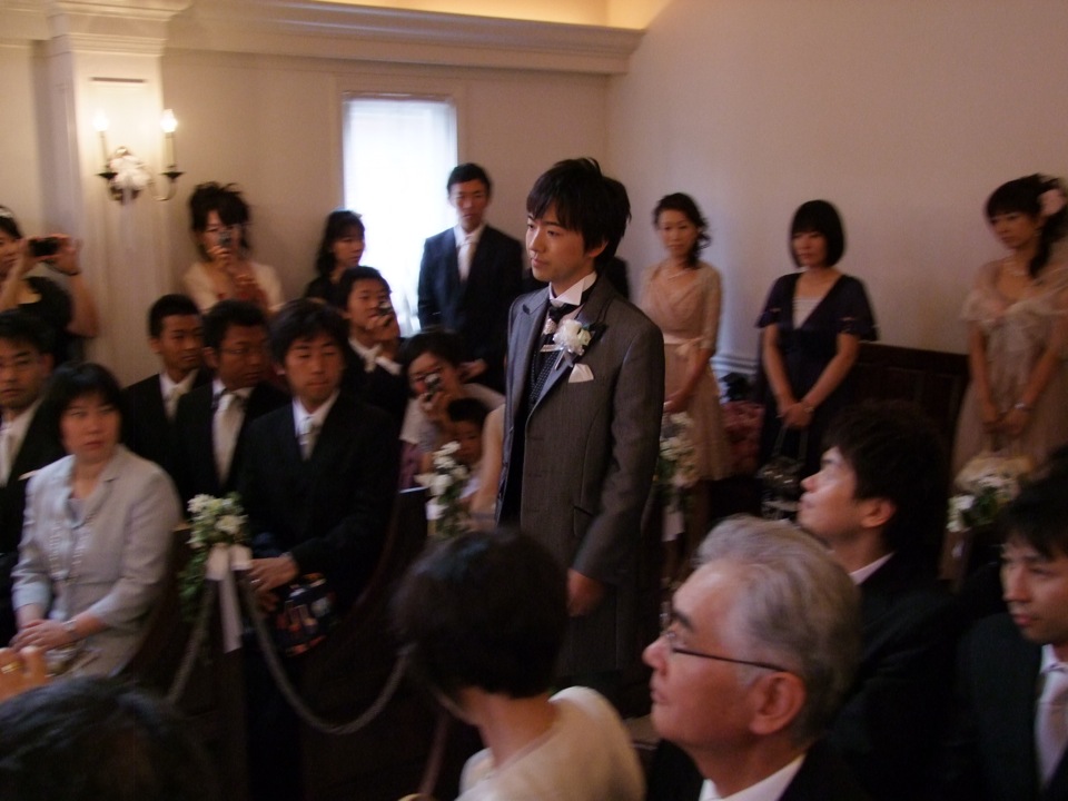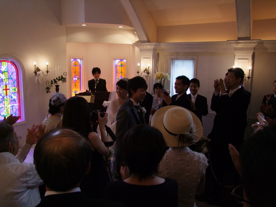 宮崎君は洗足学園出身という事で、やはり参列者もそれ関係の人達が多かったです。一番身近なところで言うと、今回の司会者はサックスの副田君で、こちらも自分と、そして宮崎君とも何度も何度も演奏を重ねている相手でもあり、信頼し合っている相手としても相応しい選択だと思いました。今回は式から参加し、披露宴、そして2次会と続いていくわけですが、長丁場だと言うのに本当に御苦労様だったと思います。まずは式にて、無事見届ける事が出来ました!