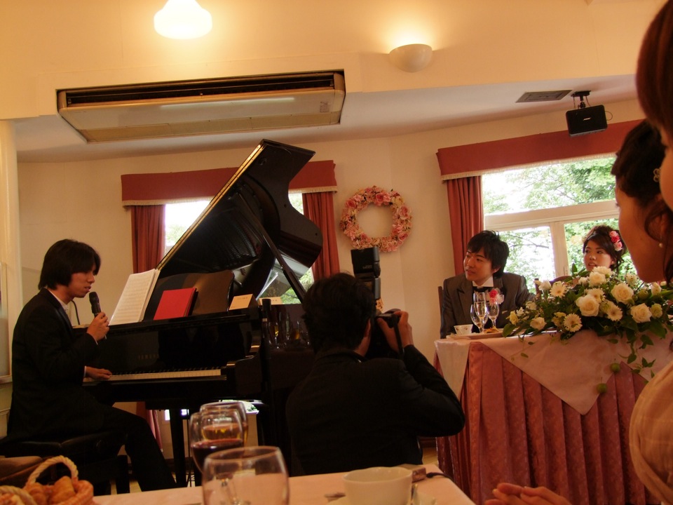 自分は披露宴の席から演奏を開始していました。その演奏頻度と言うと、これまた披露宴中は殆ど弾きっぱなしという指示を受けていて(笑)、かなりハードな内容であった事は否定できません。選曲、演奏開始、終了のタイミング等、基本的にはその場の空気を瞬時に読んでの判断ともなったので、これまでにないスリリングな演奏にもなっていたのではないかと思います。