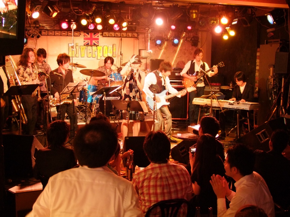 そして、この後の2次会も色々と盛り込んでいきました!…ここでは副田君もサックスを取り出し、急遽この日の為に結成された“Love Generation”というバンド(とにかく恥ずかしい感じの名前を付けるべく、考え付いたらしいです…笑)で、場を盛り上げていったわけです。バンド編成は豪華の8人編成で、もちろん自分もいますし、ドラムには立山秋航が、そしてホーン隊やボーカルまでいるという、正真正銘フルバンド編成で挑みました。何曲かは宮崎君にも加わって頂き、こちらこそ相当のロック・テイストで攻めていきます!…盛り上がりはもちろん、最高の一言に尽きました♪