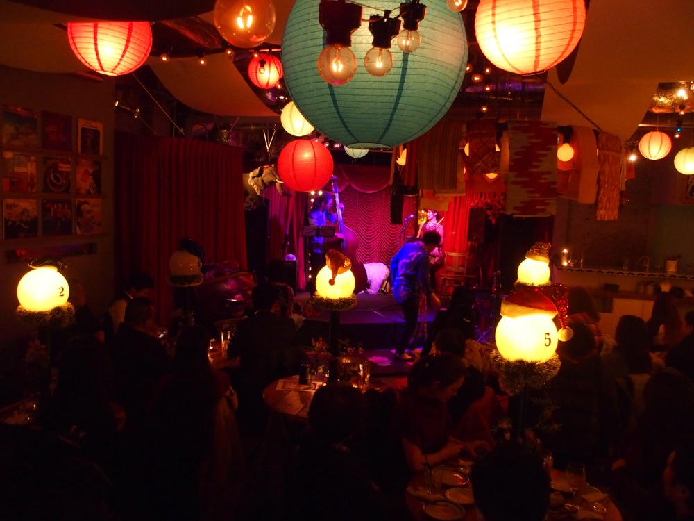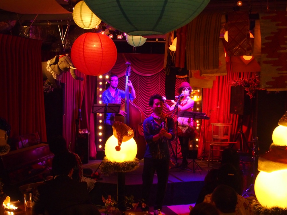 この弾楽ステージの後には、今回の出演者達とコラボでセッションを行いました。全部で2曲行い、ラストは“White Christmas”で締め括りました。ここでの即興の進化が問われましたが、お客さんの温かい眼差しで乗り切れた感じでしょうか(笑)。大きな拍手を頂け、ホッと胸を撫で下ろせたところでした。