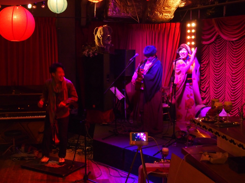 聞くと、なんとキモノやんの2人は、この日が初東京ライブだったそうで、そんな舞台をこの日に選んでくれて、嬉しいような、申し訳ないような…(笑)。タップダンサーの丹精君の縁で今回の出演が決まったそうで、丹精君も同じステージに立つ機会も設けていました。少し退廃的な雰囲気を醸し出していたキモノやんでしたが、若さなのかフレッシュさもあり、今後が楽しみな感じでした。