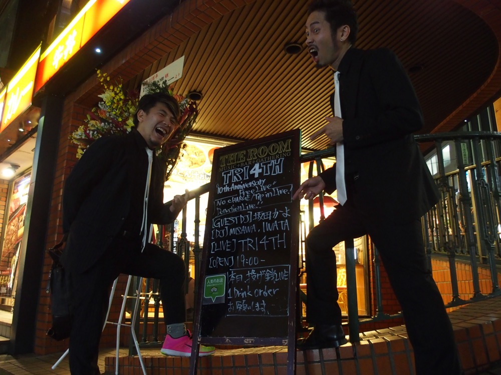 渋谷 The Room は最近リニューアルし、バー・カウンターが広くなった反面、その分フロアの面積は狭くなってしまったかもしれません。それでも、この独特な雰囲気は健在で、TRI4TH としてもこのお店で熱い演奏を響かせてやりたいという願望も強くあったと思います。なんと、開場の1時間以上も前から既にお客さんの行列が出来ており、これにはお店の方も驚かれていました。何とも有り難いものです。