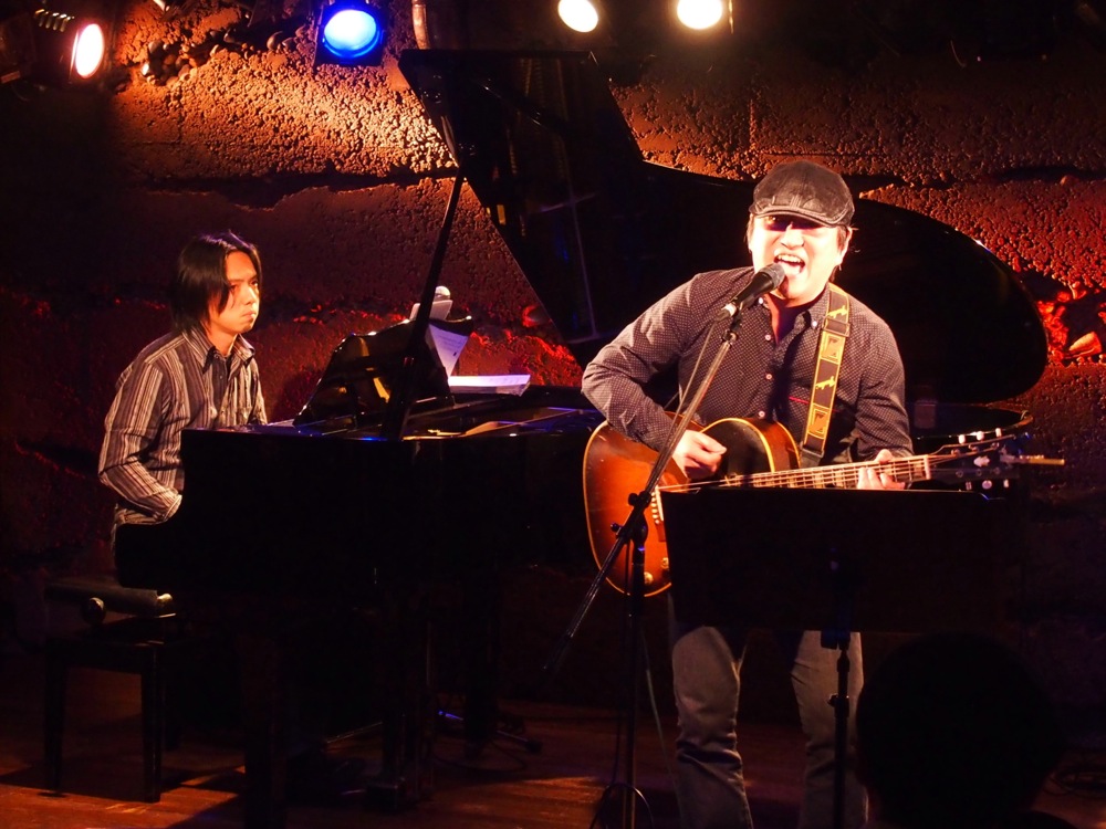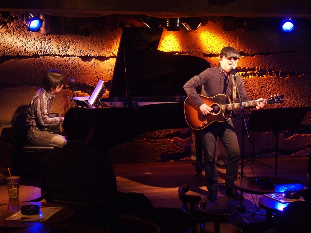 さて、この日は1バンド目に宮崎出身の女性2人組の amour、そして2バンド目にはソロで弾き語りの今泉沙友里さんと、どちらも若い女性アーティストのブッキングとなっていて、この後に自分達の出番…というのは何だか不思議な気もしましたが(笑)、これこそ個性の見せ所だと思います。2つのアーティストが華やかに、そして爽やかにステージを飾ってくれた後に、妙に男くさい自分達のステージ…。逆に遣り甲斐があるというものです(笑)。
