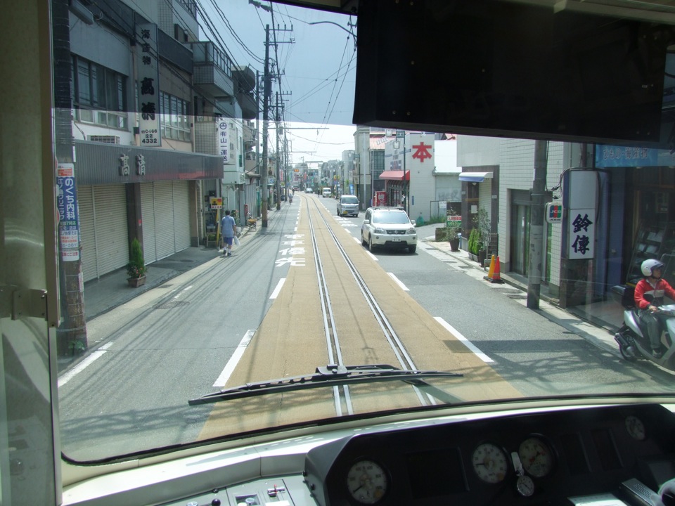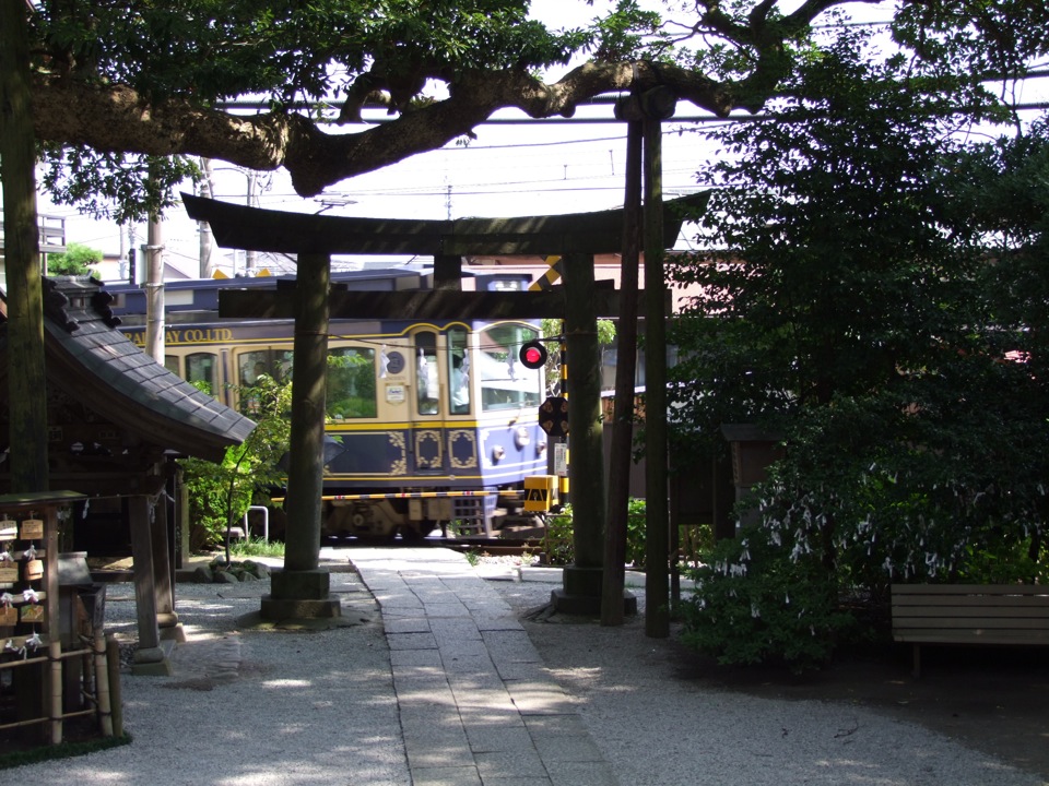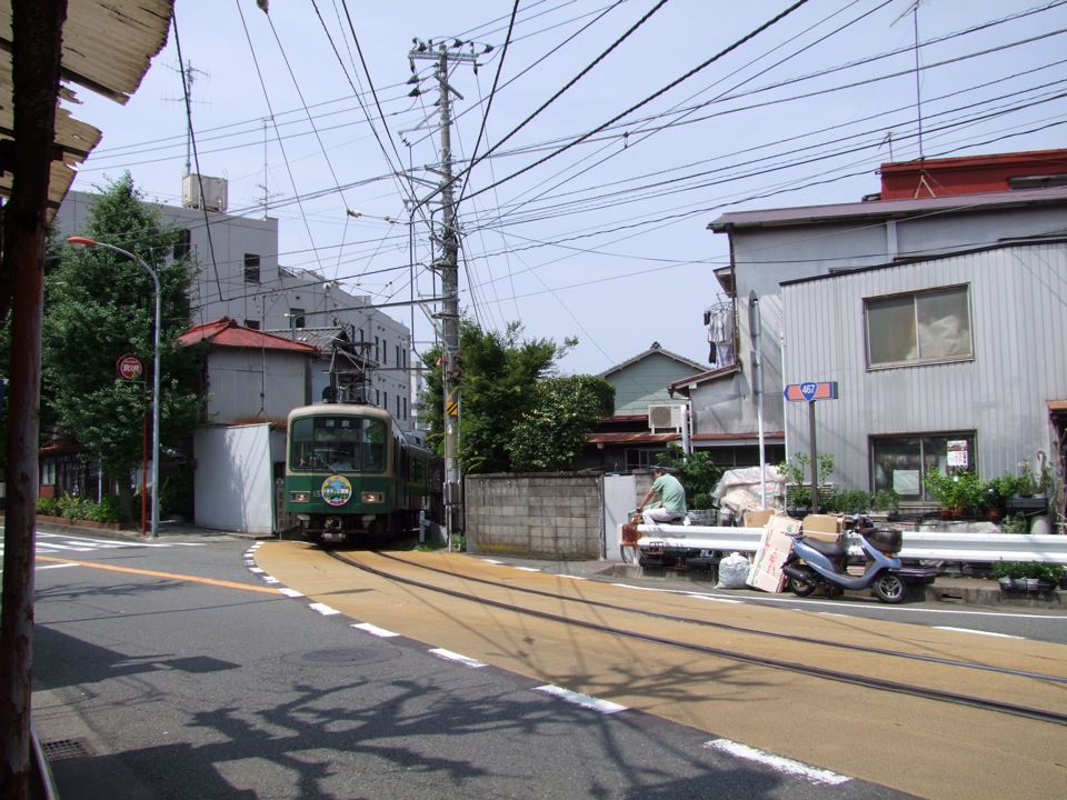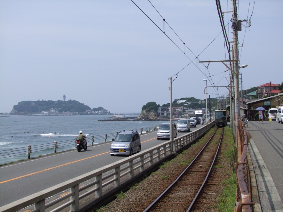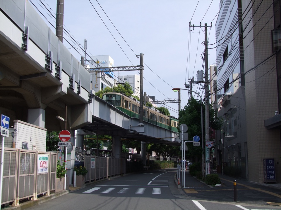 この駅から次の腰越駅までが面白いです。路線は道路との併用区間に入り、さながら路面電車のような風景が展開されるのです!…更に言えば、1両が基本の路面電車と比べると、こちらは最大4両編成ですから、いくら小型車と言えど迫力が違うわけです。また、この道路があまり広くない(商店街ですからね…笑)という事もあって、ますますスリル感が倍増されているように見えます。よく車に当たらないものだと感心してしまいますね…(笑)。