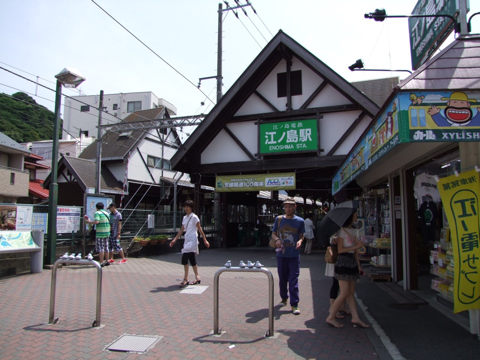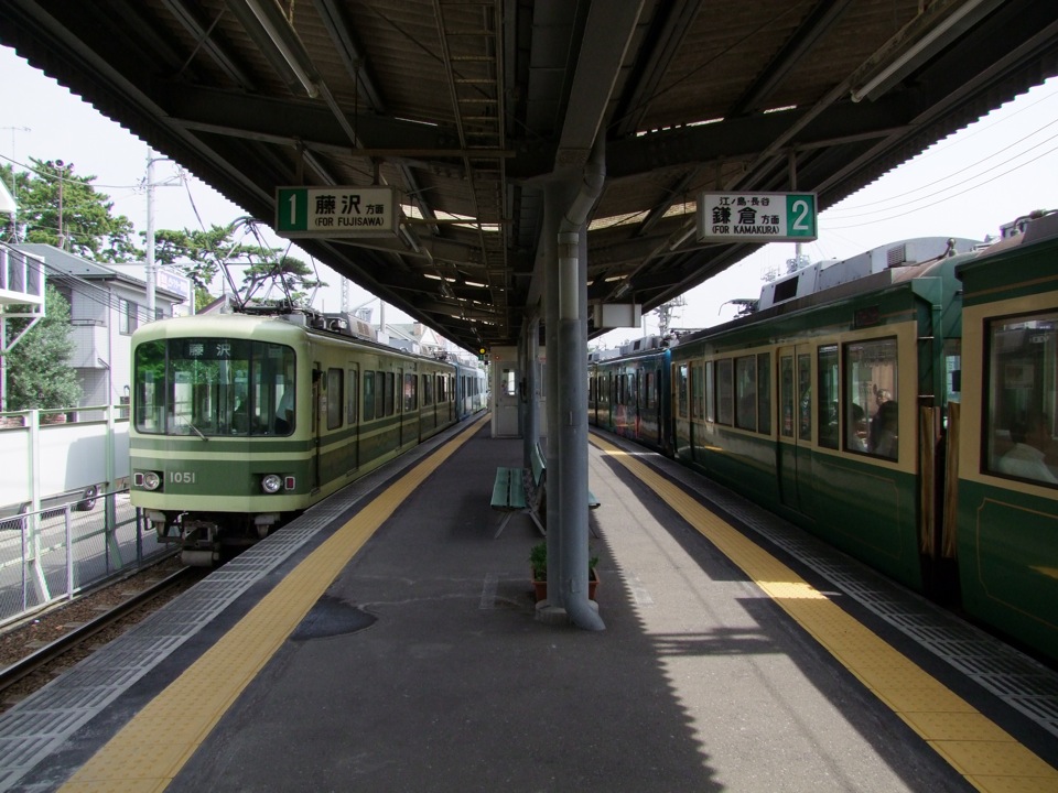 この後は路線を右に左とカーブを繰り返しながら、江ノ島駅に到着です。実際の江ノ島までは少し歩きますが、駅から一本道なので迷う事はまず無いでしょう。中枢の駅、また、江ノ島観光の拠点駅でもあるので、何となく明るい雰囲気が漂っているようにも感じられます。