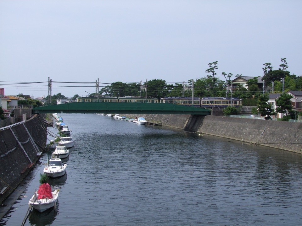 話しが逸れましたが、鵠沼駅周辺の道路は狭く、車もろくにすれ違いが出来ないような状況の街並みでしたが、これが鵠沼という土地らしさを表しているような気もしました。大通りが近くにないので、閑静な住宅街…という感じでしょうか。そこに時折聞こえる江ノ電の走行音、そして踏切の音だけが、時間の動きを作り出し、また、夏のワンシーンを展開させているようにも思いました。この駅の鎌倉方には、遠くに江ノ島を臨む事が出来、いよいよ海が近付いたと感じさせますが、まだ海が見えるのは少し先の区間になります。