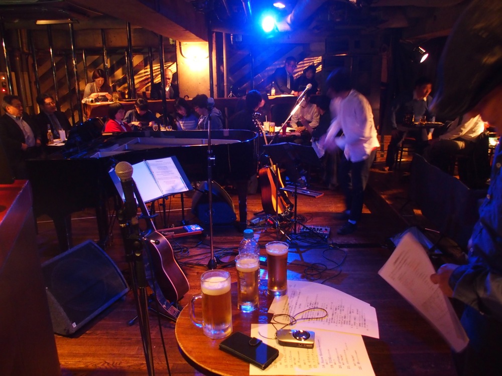 そしてライブです。3人での演奏から初めていきましたが、前回のように、ソロとしての演奏もあれば、2人での演奏もあり、ステージが進むに連れて、メンバーも入れ替えも頻繁に行われました。待機席から見る今回のステージもまた、とても新鮮な光景だったのでした。勿論、今回もステージ前に皆で乾杯を行ったものです(笑)。