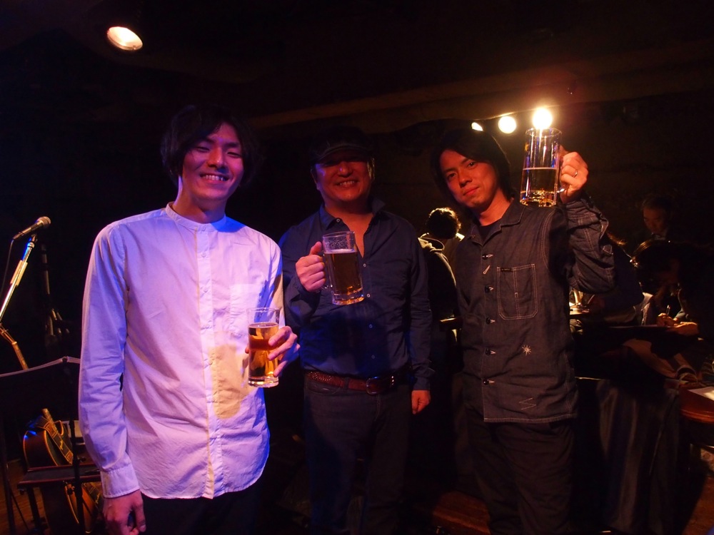 前回の反省点も踏まえ、曲の進行具合は勿論、曲間(MCやそれぞれの立ち位置等)の進行具合もある程度は事前に打ち合わせをしておいたので、スムーズに進められた部分が多かったのは良かったです。何より、この日1日をとても楽しく過ごせたのが有り難かったです。ライブ前からでもありましたが、ライブ後のビールもまた最高でした。丸本さん、又吉君、大変お疲れ様でした。また更にブラッシュアップさせたライブをしていきましょう。どうもありがとうございました!…そして、次回の丸本さんとの通常ライブは4月24日(月)になります。引き続きよろしくお願いします!