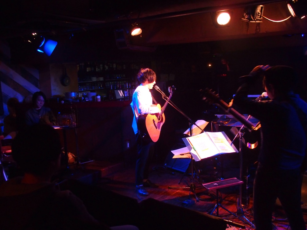 前回の2マンライブでは大きな試みがありました。それは、自分も入れた出演者3人が、常にステージ上に出ずっぱりだという事です。…とは言え、常に3人で演奏しているわけではなく、ステージ上にも出演者待機席があり、曲毎にメンバーが入れ替わり、待機席では個々でドリンク等を飲んでて自由に過ごしてオーケーというものでした。…なので、2マンライブと提示しているものの、3人で提供しているワンマンライブみたいな印象があり、それが好評でもあったのだと思います。