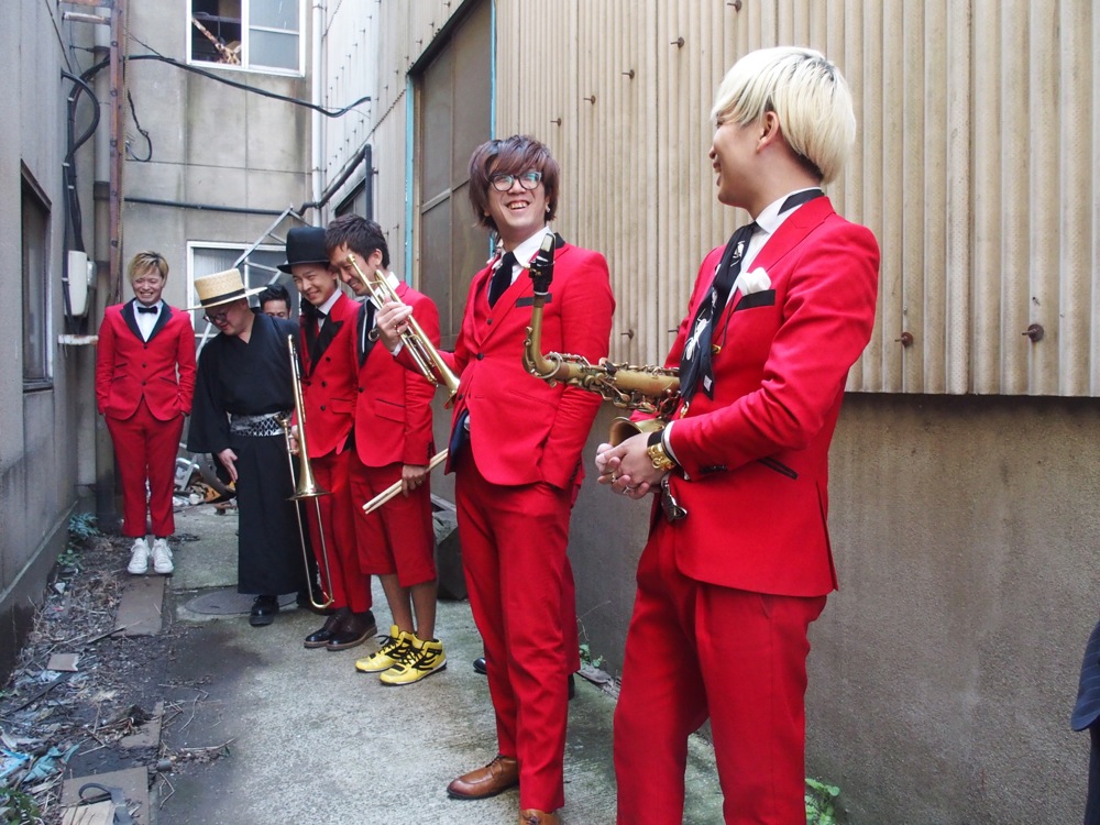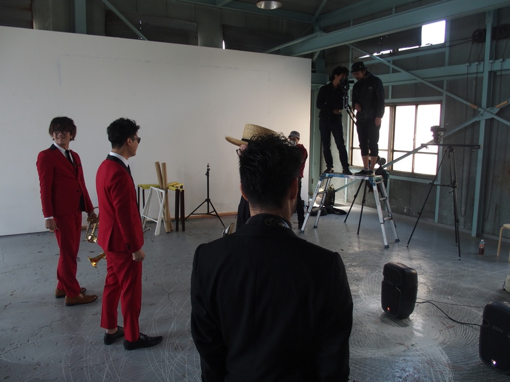 撮影に入ったら、あとは個々のパフォーマンスを尊重しつつ、皆で合わせるところは合わせるというバランスが大切になりそうでした。リズム隊の人数もそうですが、やはり最も見せたい部分はホーン隊の熱量でもあるので、こちらも見所の1つとさせたいものです。カットされた映像も皆で確認をしつつ進めていきますが、黒と赤のコントラストが面白く、それらの色が入り乱れていて非常に格好良い印象でした。ここまでくると、後は出来上がる映像を想像しながら自分達もパフォーマンスをしていく感じです。何だかんだで順調に進んでいるように思いました。